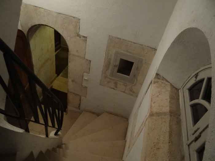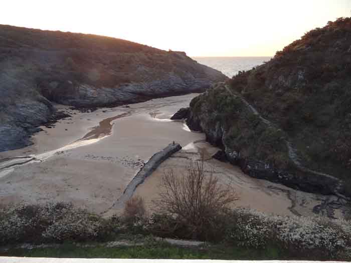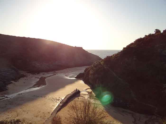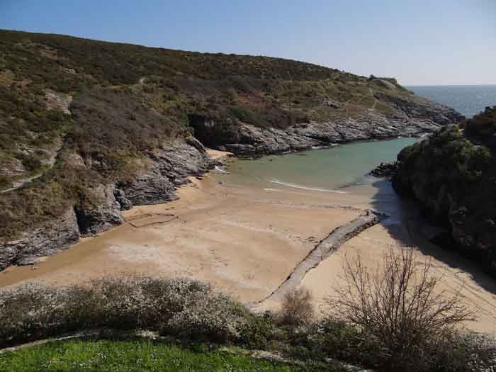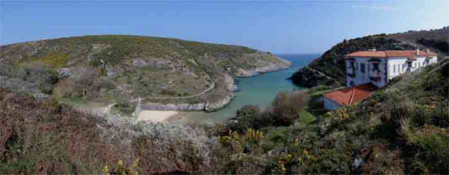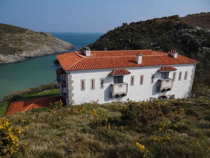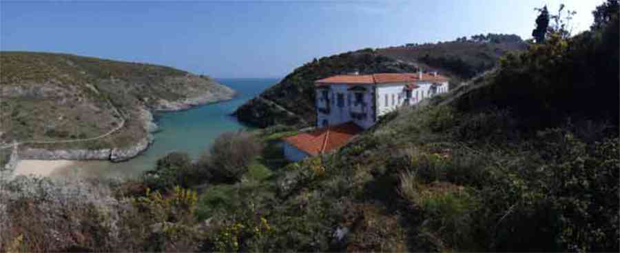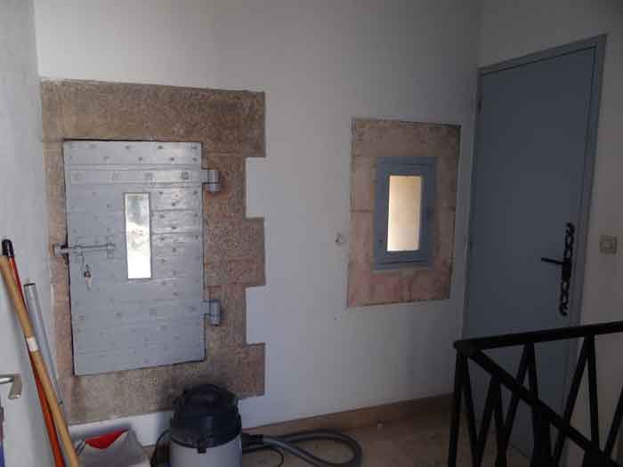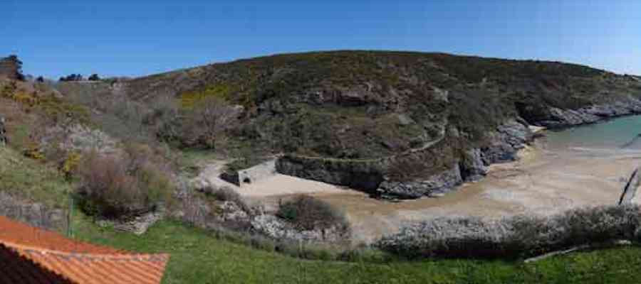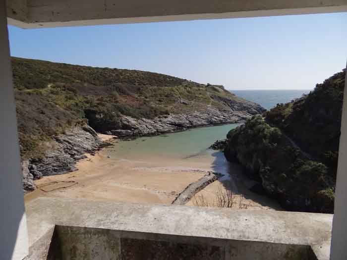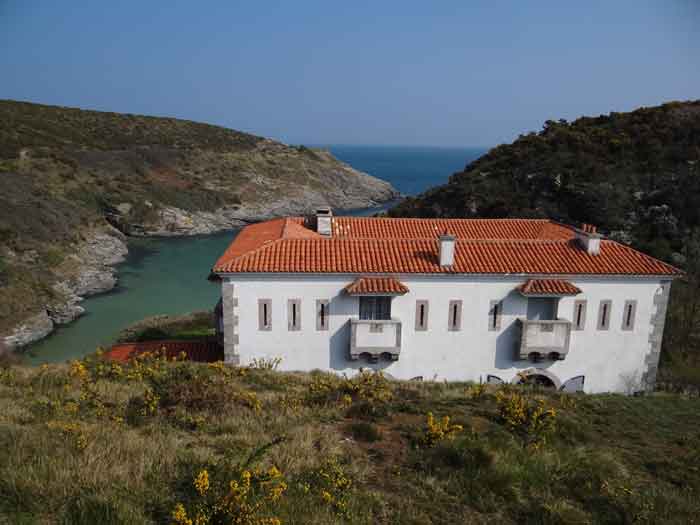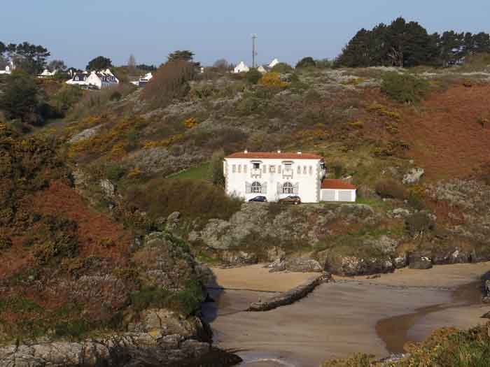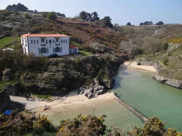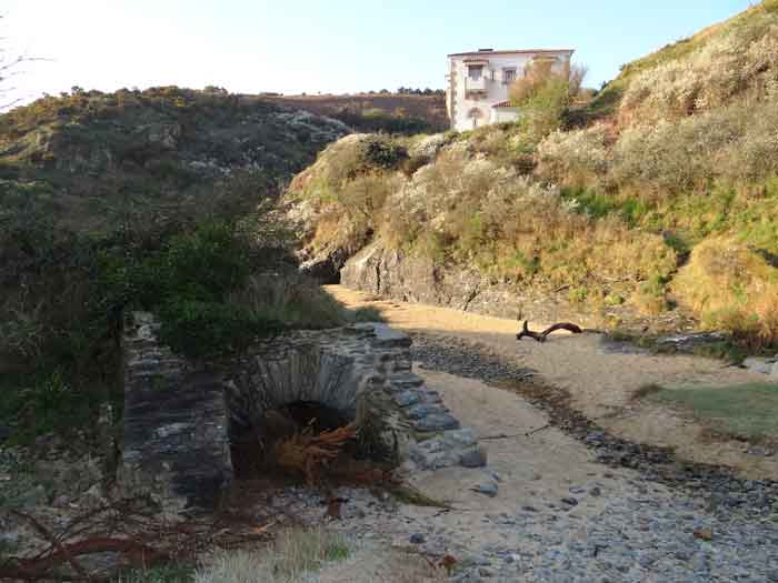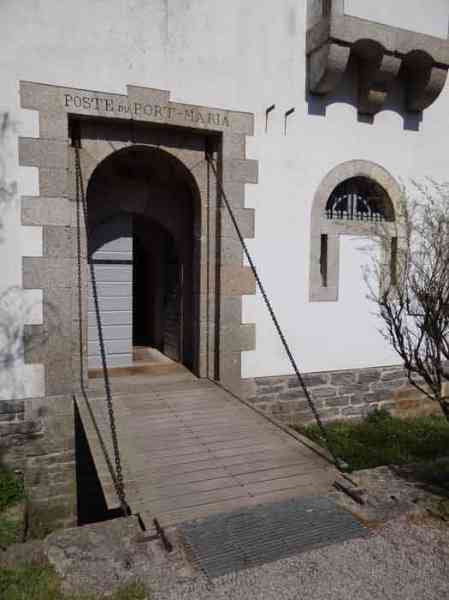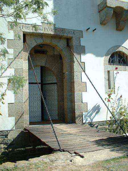 Fortress of Lorient, Belle-Île, southeast of Palais, between the points of Kerzo to the north and Skeul to the south. The small beach of Port-Maria is favorable for a landing and this had not escaped Vauban who, during his third and last voyage to Belle-Île in February 1689, recommended the erection of a number of batteries, almost all horseshoe-shaped, with a small powder magazine and a small guardhouse. The one in the cove of Port-Maria, as well as that at the point of Kerzo, are still clearly visible. The Commission of 1841 will make a certain selection among the places that should be provided with a model guardhouse; Kerzo will be excluded while Port-Maria will be provided with a modified guardhouse model 1846 no. 2 for 30 men, installed less than ten meters above the beach and dominating it. No artillery position seems to have been set up within the grounds of the guardhouse, and indeed, the pediment bears the inscription "Poste du Port-Maria" and not that of a battery. The thalweg rising towards Borderenne still has a small wall blocking half of the passage. Are these the remains of an entrenchment? Be that as it may, the one blocking the valley rising towards the village of Locmaria is still remarkably well preserved, including its gate and firing parapet, cleared of its vegetation in March 2012 by the municipality. The guardhouse, now (07/2012) a secondary residence, has the good fortune to have a heritage lover as its owner: Doctor Henry Malécot. To him and his willingness to share we owe the following information. "Vauban considers the site poorly suited for a landing: 'Rough sea, rarely calm' he writes – but his memoir is dated a February 12 (1689). However, a battery of three cannons appears on the plans of Nicolas de Fer as early as 1692; it features an earthen parapet, in a half-moon plan, supported by a masonry-revetted escarp, with a small guardhouse and a powder magazine. Partly dismantled by the English during the landing of 1761, the battery will be rearmed and entrenchments blocking the two valleys will be set up. This battery will be abandoned at the end of the First Empire. The Commission of 1841 proposes its suppression but desires the construction of a coast guard station for thirty men which would be armed with six rampart guns. Finally, a crenellated guardhouse type 1846 no. 2 bearing the inscription 'Poste du Port-Maria – 1860' is built at that date. It is sheltered from view and fire from the open sea; the parapet of its terrace features three embrasures for small mountain guns intended to ensure the close defense of the redoubt. The old battery is preserved (its ruins can still be seen at the exit of the cove on the left). Sold among the first by the State Domains on September 11, 1891 to a notable (and Belle-Île 'promoter'), Emile Cazalet, the fort was transferred on June 5, 1895 to the Malécot family, who still own it and have converted it into a secondary residence. The transformation of the terrace into a covered sentry walk, then into a habitable floor, with a tiled roof, may be surprising, but does not alter the readability of the original structures of the work. It has long been offered for seasonal rental – already between 1925 and 1940. During the Second World War, Locmaria became a defense point, coded Wn I 336 a. The fort was occupied by the Germans who left it in ruins but, fortunately, did not carry out their plan to blow it up upon their surrender in May 1945… It was rehabilitated in the 1950s. The fort contains a reassembled fireplace, originating from the Château de Rimaison in Bieuzy-les-Eaux, Morbihan, dating from the 16th century (around 1580) and whose jambs consist of atlantes. This fireplace has been classified as a Historical Monument since January 7, 1953. The Fort itself was inscribed in the Supplementary Inventory of Historical Monuments on October 30, 2000, along with the majority of its counterparts. It is currently in excellent condition and offered for seasonal rental. A drawbridge, as close as possible to the original schemes, was reinstalled in 2006." Perhaps we should emphasize the particularly judicious choice of the guardhouse's location. Sheltered from direct fire coming from the open sea, it presents its greatest length to the beach, in the center of which, on the terrace, there is an embrasure for a possible small-caliber gun. The two short sides of the same terrace have a similar one, also in their center. The latter would only have had to come into action if the attacker had managed to cross the entrenchments at the bottom of the valleys, then acting by reverse fire. This is not without importance because if the adversary had been able to advance beyond the firing range of the terrace, he would have quickly made it untenable by occupying the height against which the guardhouse leans, virtually nullifying its capacity for resistance. Note that before opting for a guardhouse model 1842 no. 2, the Brest Engineering Directorate had proposed, in a project for 1857-1858, a construction designated as "defensive guardhouse for 30 men intended to serve as a redoubt for the posts of the ports Marie, Fouquet and Pouldon". Externally very close to a guardhouse model 1846 no. 3, this project however cut off this model's three magazines opposite the entrance and, in the basement, at the same level as the cisterns occupying the basement of the entrance, but on a lesser width, one would have arranged a food store, a kitchen, and a cartridge depot. The floor (actually the ground floor) would have been occupied by the entrance, the post chief's room, that of the keeper, a room for 10 men and a second for 20 men; to which a summit terrace should have been added. This hybrid between a tower and a guardhouse did not come to fruition. The Port-Maria post was already proposed for decommissioning in July 1874, but we do not know if it was confirmed in 1876 or, like many other coastal batteries, in 1888. Note that while carrying o