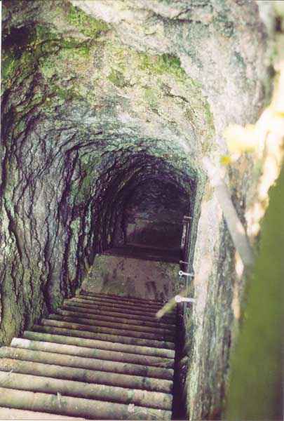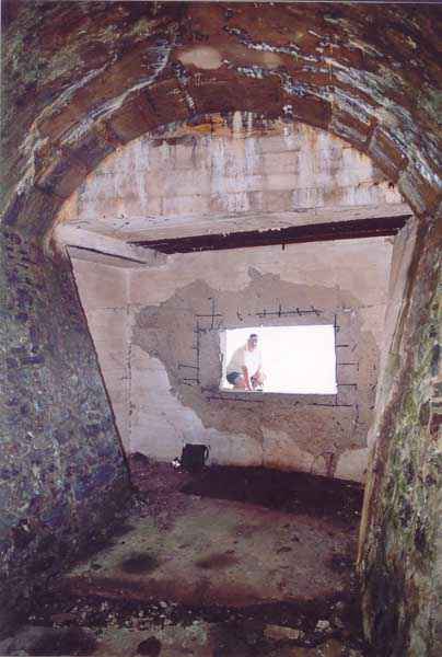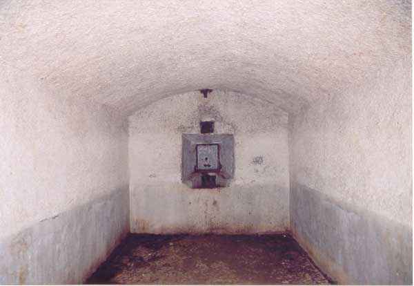 Fortress of Brest, Crozon peninsula, 1888. Located a short distance to the left of Pointe des Espagnols. Breach battery armed with 2 naval 32 cm guns model 1870-84 firing at sea level. The left casemate had its embrasure demolished to allow access to a German blockhouse for a 50 mm gun, cast perpendicular to another one, armed in the same manner, installed just in front of the embrasure of the right casemate (whose mask wall was destroyed for the removal of the guns during the First World War). Only the left (southern) blockhouse has retained the shield of its gun (50 mm K.W.K 39), but the interior is under water. The only notable difference compared to other casemates of the same type sheltered by the peninsula, is that the powder magazine has an access corridor 5 m long. Rungs (German?) were sealed in the drainage duct of this magazine. Note for the record that in May 1892, it was planned to establish directly to the west a battery of 6 x 100 mm, a project that would be abandoned in 1904. Exposed to all winds, access is quite difficult to find and this battery is hard-earned.