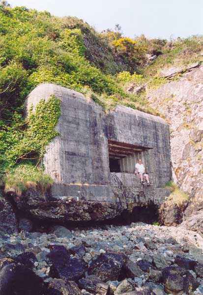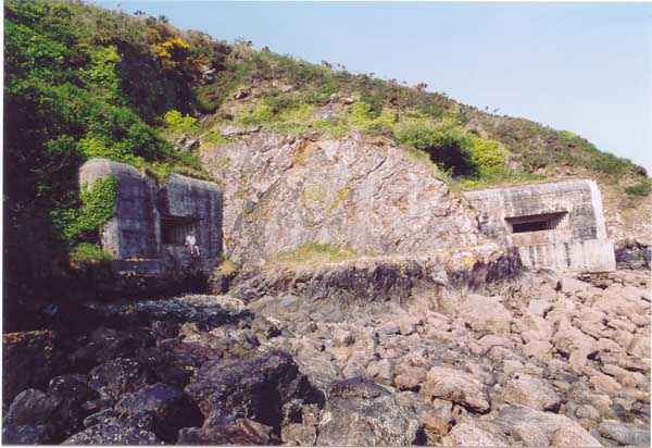 Festung von Brest, Halbinsel Crozon, 1888. Gelegen in kurzer Entfernung links der Pointe des Espagnols. Breschbatterie bewaffnet mit 2 Marinegeschützen 32 cm Modell 1870-84, die knapp über die Meeresoberfläche feuern. Die linke Kasematte hatte ihre Scharte abgebrochen, um Zugang zu einem deutschen Bunker für eine 50-mm-Kanone zu ermöglichen, der senkrecht zu einem anderen, gleich bewaffneten Bunker gegossen wurde, der etwas vor der Scharte der rechten Kasematte installiert wurde (deren Maskenmauer für die Entfernung der Geschütze während des Ersten Weltkriegs zerstört wurde). Nur der linke (südliche) Bunker hat den Schutzschild seines Geschützes (50 mm K.W.K 39) bewahrt, aber das Innere steht unter Wasser. Der einzige nennenswerte Unterschied zu anderen Kasematten des gleichen Typs auf der Halbinsel ist, dass das Pulvermagazin einen 5 m langen Zugangskorridor hat. Sprossen (deutsche?) wurden in den Entwässerungskanal dieses Magazins eingemauert. Erwähnenswert ist, dass im Mai 1892 geplant war, direkt im Westen eine Batterie von 6 x 100 mm zu errichten, ein Projekt, das 1904 aufgegeben wurde. Allen Winden ausgesetzt, ist der Zugang ziemlich schwer zu finden und diese Batterie muss man sich verdienen.