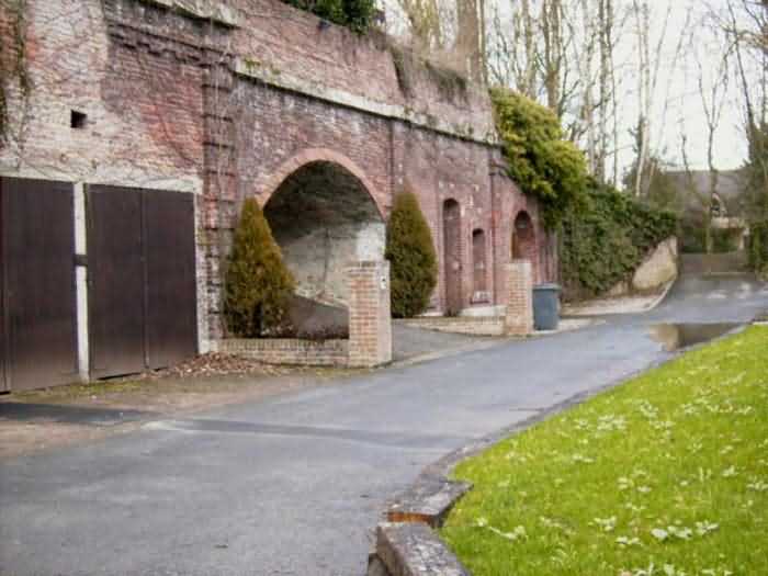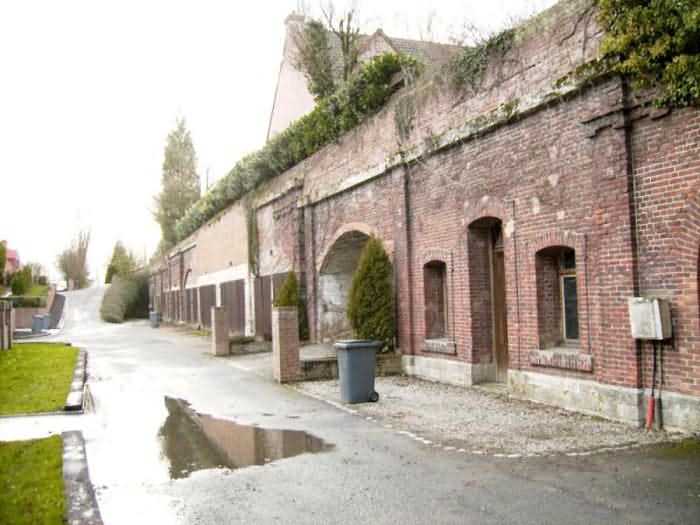 Fortress of Lille, west-north-west of the town, prior to 1885. 48 m altitude. Named battery Sénarmont. It flanked the Dunkirk road. Trapezoidal work having all the characteristics of a small fort. Its dry ditches were defended by a wing (salient II) and a small double caponier at salient III. In the centre of the gorge, the entrance projected into the gorge ditch so as to form a double caponier between the gun cellars of which the entrance porch opened. The entrance tunnel emerged into a courtyard perpendicular to the five bays of the troops' barracks. Both to the left and right of this barracks, two other smaller rooms were attached to it. Beyond these rooms, a rooted passage marked the end of the rampart street. The rooted passage on the left protected the entrance to the powder magazine, while the one on the right protected that of another artillery magazine. The access shafts to the caponiers, serving as traverse-shelters, had several lateral magazines. The centre of the head front consisted of three artillery platforms separated by two traverse-shelters Model 1879. Today (09/2005), several private properties occupy the tops of the work. Its ditches are filled in and at most it is possible to see what remains of the troops' barracks, one of the bays of which moreover serves as a porch for an ascending path leading to dwellings. Two other bays had been destroyed by English artillery during the First World War.