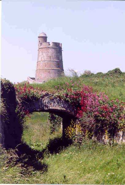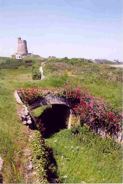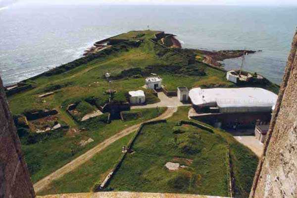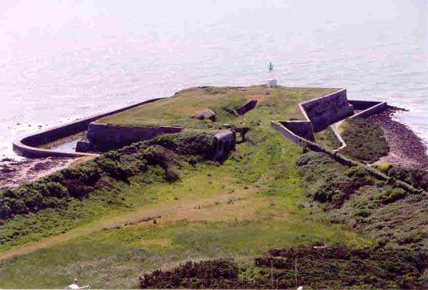 Place de Cherbourg, Saint-Vaast-La-Hougue. Située à l'extrême pointe du fort de La Hougue, elle affecte la forme d'un rectangle cerné d'un fossé en eaux. Elle protégeait d'ailleurs la vanne de mise en eaux du fossé de l'ensemble du fort. Jusqu'en 1875, année de son déclassement, avec 24 piéces, elle abritait la principale puissance de feux du fort dont le but était de protéger les mouillages dans la rade. Par la suite, les canons furent reportés en arriére, dans les batteries de la Tour et du Manquet. Hormis deux blockhaus allemands (ayant conservé bon nombre d'éléments métalliques), cette batterie est restée en l'état. Si sa visite requiert une autorisation car située dans un terrain de la Marine, un sentier permet à tout un chacun d'en faire le tour (06/2005), ce que nous conseillons d'ailleurs.