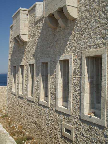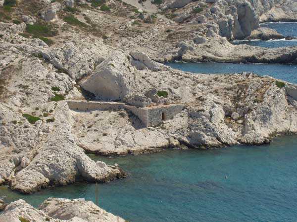 Fortress of Marseille, Frioul archipelago, Pomègues island. 75 m/asl. It is a crenellated tower Mle 1846 no. 3 protected on all its perimeter by a dressed scarp protecting the small ditch which is customary for constructions of this model. Located in a protected natural area, this tower, freely accessible (07/2005), is in good condition and freely accessible. The only drawback is that we have found no trace of it in the bibliography nor in the decommissioning lists in our possession. We therefore mention it for information.