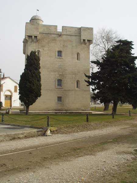 Dept 13 (Bouches-du-Rhône). The first defense encountered by an enemy coming from the sea and going up the Rhône would have been this battery. We have no description of it, and we do not know if it was close to the 18th century tower, or if only the top platform of this tower constituted the said battery. This tower, now restored (02/2006), is the subject of a request for classification as a historical monument, is square in shape and has four levels, platform included. Each upper corner has a machicolation while the entrance was defended by a murder hole. The essential role of this tower was not to prevent an enemy intrusion by force, but rather to give the alert. A list of decommissionings in our possession indicates "battery and tower of the Rhône (or Saint-Louis)" which suggests a battery, even if only a simple earth rampart, near the tower whose environment has now been leveled. Tower and battery were decommissioned in 1889 based on opinions of the Defence Committee and the Superior War Council, opinions dated December 3, 1888.