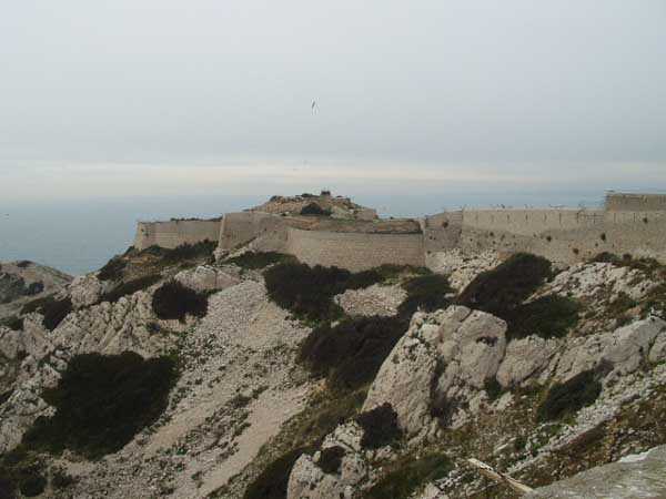 Vesting van Marseille, eiland Pomègues, 188? Belangrijke batterij waarvan de ingang, omlijst door pilasters, gevolgd wordt aan de rechterkant door een imposante gemetselde pier die de twee traveeën van een kleine kazernering op één enkel niveau beschermt. De batterij, met een bewogen omtrek, is omgeven door een gemetselde escarpe-muur. Haar bewapening was 5 kanonnen 24 cm Mle 1876, waarvan 2 op PA affuit en 3 op PC affuit. De affuiten worden in 1913 vervangen door C Mle 1911 affuiten. Vandaag (03/2006) toegang verboden, verschijnt ze vrij vervallen.