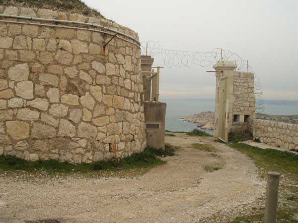 Festung von Marseille, Insel Pomègues, 188? Wichtige Batterie, deren Eingang, von Pilastern eingerahmt, auf der rechten Seite von einem imposanten gemauerten Molen gefolgt wird, der die zwei Joche einer kleinen Unterkunft auf nur einer Ebene schützt. Die Batterie, mit unruhigem Umfang, ist von einer gemauerten Escarpen-Mauer umgeben. Ihre Bewaffnung war 5 Kanonen 24 cm Mle 1876, davon 2 auf PA Lafette und 3 auf PC Lafette. Die Lafetten werden 1913 durch C Mle 1911 Lafetten ersetzt. Heute (03/2006) Zugang verboten, erscheint sie ziemlich heruntergekommen.