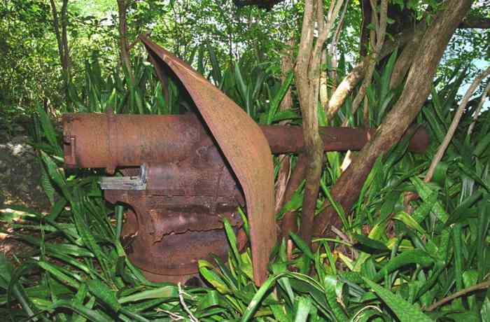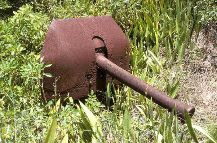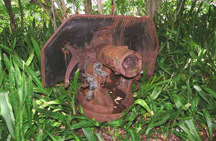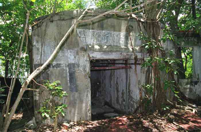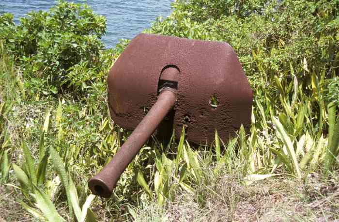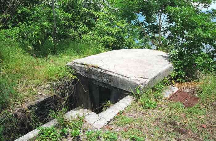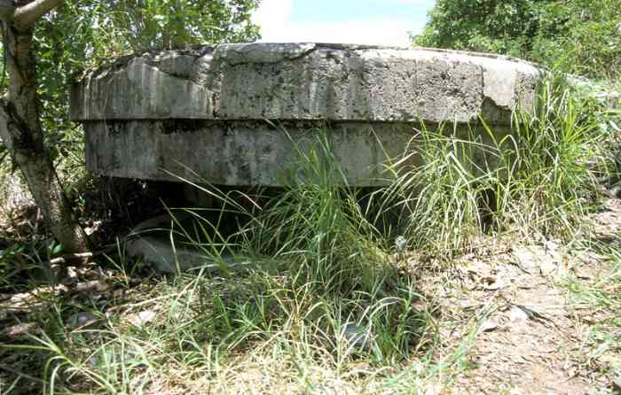 Martinique. Fort-de-France. Aussi nommée batterie du Lazaret. Dès 1741, une batterie, armée de deux canons, est installée à cet emplacement, situé au sud de la baie de Fort-de-France, sur la commune des Trois-Îlets. Le réduit actuel, qui a servi un temps de centre de convalescence, d'où son second nom, est plus récent. En 1939, deux canons de 95 Mle 1888 sur affût C Mle 1904 G sont installés devant le réduit. Ils croisent leurs feux avec ceux de la batterie identique, installée au fort Saint-Louis. Un petit PDT en béton armé est construit entre les deux pièces, qui sont toujours en place de nos jours. Le réduit est alors utilisé comme magasin à munitions, et comme casernement. Plus récemment, dans les années 1970-80, le site a été aménagé en cinéma de plein air. Il est aujourd’hui à l’abandon ; attention aux mancenilliers. Auch Lazaret-Batterie genannt. Bereits 1741 wurde an dieser Stelle, südlich der Bucht von Fort-de-France in der Gemeinde Les Trois-Îlets, eine mit zwei Kanonen bewaffnete Batterie installiert. Das heutige Reduit, das zeitweise als Genesungsheim diente, daher sein zweiter Name, ist neueren Datums. 1939 werden vor dem Reduit zwei Kanonen 95 mm Mle 1888 auf Lafette C Mle 1904 G installiert. Sie kreuzen ihr Feuer mit denen der identischen Batterie, die im Fort Saint-Louis installiert ist. Ein kleiner Stahlbeton-Feuerleitstand (PDT) wird zwischen den beiden Geschützen errichtet, die heute noch vorhanden sind. Das Reduit wird damals als Munitionslager und als Kaserne genutzt. In jüngerer Zeit, in den 1970er-80er Jahren, wurde der Ort zu einem Freiluftkino umgebaut. Heute ist er verlassen; Vorsicht vor den Mancinellbäumen. Ook lazaretbatterij genoemd. Reeds in 1741 werd op deze plaats, ten zuiden van de baai van Fort-de-France in de gemeente Les Trois-Îlets, een batterij opgericht, bewapend met twee kanonnen. Het huidige reduit, dat een tijd dienst deed als herstellingsoord, vandaar de tweede naam, is recenter. In 1939 worden twee kanonnen van 95 mm Mle 1888 op affuit C Mle 1904 G voor het reduit geïnstalleerd. Zij kruisen hun vuur met die van de identieke batterij, geïnstalleerd in Fort Saint-Louis. Een kleine vuurleidingspost (PDT) van gewapend beton wordt tussen de twee stukken gebouwd, die nog steeds aanwezig zijn. Het reduit wordt dan gebruikt als munitiemagazijn en als kazerne. Meer recent, in de jaren 1970-80, werd de site ingericht als openluchtbioscoop. Hij is tegenwoordig verlaten; let op de mancenillenbomen. Also called Lazaret battery. As early as 1741, a battery, armed with two cannons, was installed at this location, south of the Bay of Fort-de-France, in the commune of Les Trois-Îlets. The current keep, which served for a time as a convalescent home, hence its second name, is more recent. In 1939, two 95 mm guns Mle 1888 on mounting C Mle 1904 G are installed in front of the keep. They cross their fire with those of the identical battery, installed at Fort Saint-Louis. A small reinforced concrete fire control post (PDT) is built between the two pieces, which are still in place nowadays. The keep was then used as an ammunition magazine and as accommodation. More recently, in the 1970s-80s, the site was converted into an open-air cinema. It is now abandoned; beware of the manchineel trees. Také nazývána lazaretní baterie. Již v roce 1741 bylo na tomto místě, jižně od zátoky Fort-de-France v obci Les Trois-Îlets, instalováno dělo, vyzbrojené dvěma děly. Současný reduit, který sloužil nějakou dobu jako rekonvalescenční centrum, odtud jeho druhý název, je novějšího data. V roce 1939 jsou před reduitem instalována dvě 95mm děla vz. 1888 na lafetě C vz. 1904 G. Kříží svou palbu s děly identické baterie instalované v pevnosti Saint-Louis. Mezi oběma kusy, které jsou dodnes na místě, je postaveno malé železobetonové palebné řídící stanoviště (PDT). Reduit byl tehdy používán jako muniční sklad a jako kasárna. V novější době, v 70.-80. letech 20. století, bylo místo upraveno na letní kino. Dnes je opuštěné; pozor na manchineelové stromy. © JJM 31/03/2026