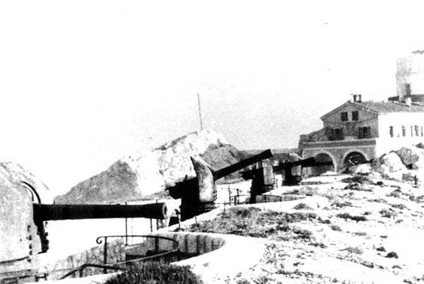 Festung von Marseille, Insel Pomègues. Nebenbatteire der gleichnamigen und bewaffnet mit 4 Kanonen 95 Mle 1888 auf Lafette Mle 1904. Wir haben keine Beschreibung oder Informationen über ihren aktuellen Zustand.