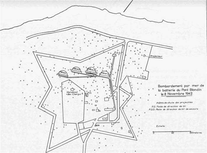 Morocco. Fédala. Ollivier Battery. Fixed secondary artillery battery, built from 1933 for the defence of the port and beaches of Fédala (Mohammedia), east of Casablanca, jointly with the 100 battery of the Falaise. Established on a small hillock, east of the Oued Nefifik, at an average altitude of 20 metres, it is armed with 4 138 Mle 1910 guns on Mle 1919-25 mount (1). The guns are installed on BA Mle 26 platforms, in the centre of circular pits, 8 metres in diameter. These have adjoining niches, with a capacity of 88 complete rounds, arranged at the rear, and on either side of the pit entrance. Access is via two staircases, leading to a corridor covered with light reinforced concrete protection, pierced with light wells. This arrangement is identical to that which could still be observed, a few years ago, at the Cap Couronne battery in Marseille. The centre-to-centre distance of the guns is only 40 metres, which seems to be justified only by economic reasons, as there is no lack of space to increase it to a more standard distance of 80 metres. Work has clearly been undertaken on pit No. 1, to equip it with protected ammunition niches, identical to those built in 1944 on pits 3 and 4 of the 138 battery at El Hank. These niches were excavated, but the work stopped there. The command post, built behind the guns at an average distance of 80 metres, is protected only against splinters. It is equipped with a C Mle 26 plotting board and a 5-metre rangefinder. A 150 G.P. searchlight, installed to the right and in front of the guns, provides illumination of the firing field. To guard against the fog, which often hangs about twenty metres above the sea, an auxiliary command post is set up in front of the guns, a few metres from the shore. In addition to fire control equipment, the searchlight command post is located there. The unprotected ammunition magazine is arranged behind the guns, on the reverse slope. It supplies the guns by means of a 40 cm gauge track. Accommodation is provided by solid buildings and, given its vulnerability to a landing, the battery is surrounded by a low barbed wire network, flanked by light machine guns. Anti-aircraft defence is originally provided by 2 8 mm machine guns but, in 1941, it is reinforced by 4 13.2 C.A.S. mounts. On 8 November 1942, the battery is significantly understrength, as it has only 53 petty officers, quartermasters and sailors, commanded by Chief Petty Officer Le Hir, to man the guns and ensure close defence. The 13.2 machine guns are not manned due to lack of personnel. The battery is in the attack axis of the centre group and, at 05:30, the battery uncovers its searchlight to illuminate suspicious vessels, which are in fact the first boats of the assault wave, heading for the Red and Blue beaches. Unfortunately, the searchlight proves impossible to turn off and is destroyed by machine gun fire. At 06:10, the battery, following the example of the Falaise battery, opens fire on the landing fleet, scoring a hit on the destroyer Murphy. The firing continues intermittently, on transport ships and landing craft, counter-fired by the cruiser Brooklyn. The latter scores a hit on gun 2, killing three crewmen and wounding 3 others, then another on the command post, destroying the rangefinder and killing its operator. The battery, subjected to close mortar fire, ceases fire at 08:00. It fired 150 rounds and received about 190 projectiles, a large majority of which came from the Brooklyn, which fired 757 rounds of 152 at it. Four men were killed, one gun was put out of action, and the searchlight and rangefinder were destroyed. The battery is repaired after the fighting. In April 1946, the guns are removed and transferred to the El Hank battery, to replace its guns, which had reached the end of their potential. Nowadays, the battery is in a remarkable state of preservation, although its pits are overrun with rubbish. It is partly located on military land. It is one of the most beautiful secondary artillery batteries we have seen. JJM 04/2008