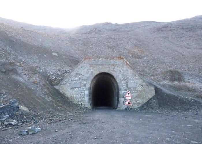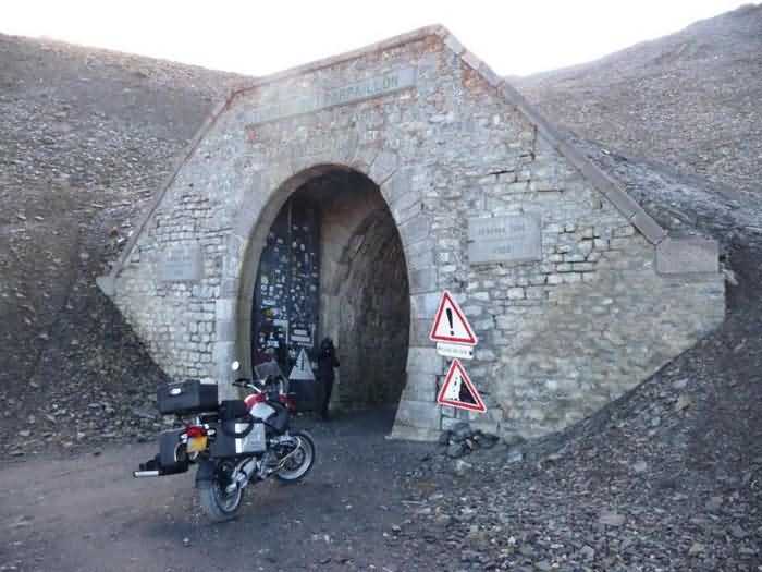 De gedenkplaten van de twee generaals zijn identiek aan zuid- of noordkant, het enige verschil is dat in het zuiden er geen inkt meer is om de inscripties te lezen, zonder twijfel door de zon. De noord- en zuidfrontons zijn identiek. De tunnelbodem is van aarde, bijzonder modderig op bepaalde plaatsen. De doorgang met de motor was vrij delicaat. Er zijn aan beide uiteinden metalen deuren die sinds jaren niet meer bediend zijn. Gelukkig trouwens! In de nabijheid van de zuidingang bevinden zich de ruïnes van een klein gebouw dat, denk ik, als kazernering moet gediend hebben tijdens de uitvoering van de werken. Men kan enkele openingen met militaire bestemming onderscheiden, eerder op het westuiteinde. Het lijkt op schietgaten. Er zijn geen sporen van tegels of balken in het puin, wat me doet denken dat het gebouw volledig gemetseld was, gemaakt van bindmiddel en stenen… Praktische inlichting: als u ooit overweegt naar de tunnel te gaan, weet dan dat de beklimming via de zuidflank op dit ogenblik mogelijk is met een normale wagen zonder enige moeilijkheid. Men moet zich alleen met geduld wapenen. Rekenen op een kleine tien kilometer geheel berijdbare piste. Niet proberen de beklimming bij vochtig weer, het zou tot mislukken gedoemd zijn. Het uitzicht is buitengewoon. En met de motor is het magnifiek! (P.G. 10/2008)