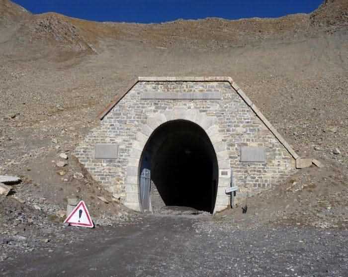 Fortress of Tournoux, north-west of the fortress, 1892-1900. Work dug under the pass of the same name, pass at 2783 m/alt, to easily join Tournoux to Embrun. Cited for memory. The geographical coordinates above indicate the location of the south entrance of the tunnel.
