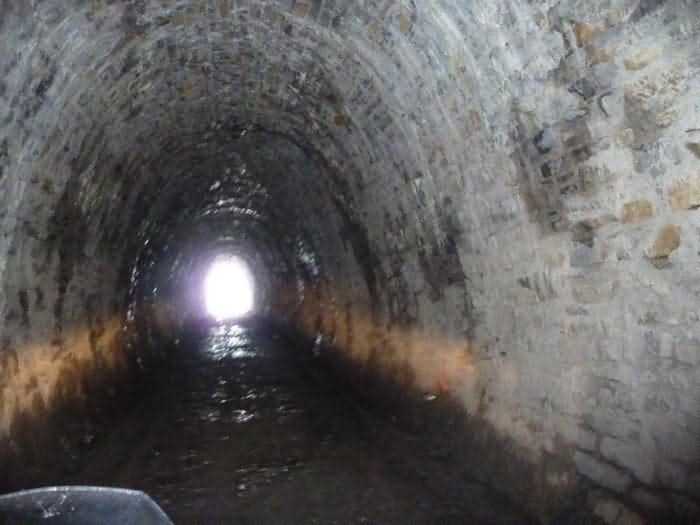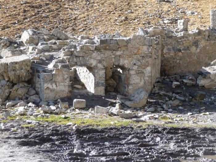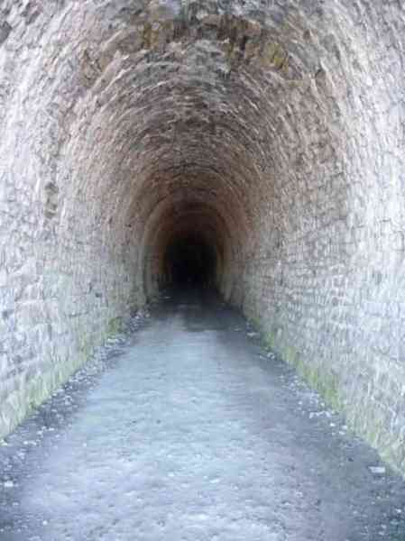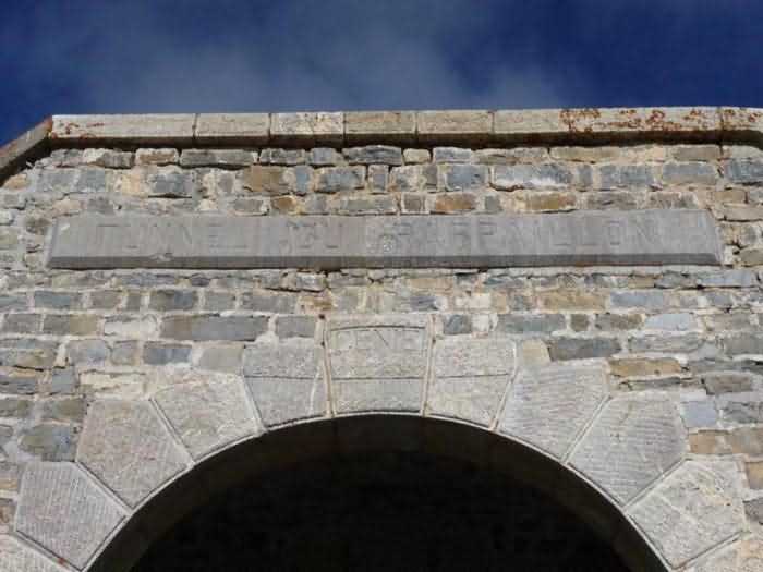 The commemorative plaques of the two generals are identical on south or north sides, the only difference being that in the south, there is no more ink to read the inscriptions, doubtless because of the sun. The north and south pediments are identical. The tunnel floor is earthen, particularly muddy in some places. The passage by motorcycle was quite delicate. There are at both ends metal doors that have not been operated for years. Fortunately, by the way! Near the south entrance are the ruins of a small building that must have served as barracks during the execution of the works, I think. One can distinguish some openings with military purpose, rather on the west end. It looks like arrow slits. There are no traces of tiles or beams in the debris, which makes me think that the building was entirely masonry, made of binder and stones… Practical information: if one day you consider going to the tunnel, know that the ascent by the south slope is, at the present time, possible by normal car without any difficulty. One must only arm oneself with patience. Count about ten kilometers of quite passable track. Do not attempt the ascent in wet weather, it would be doomed to failure. The view is extraordinary. And by motorcycle, it is magnificent! (P.G. 10/2008)