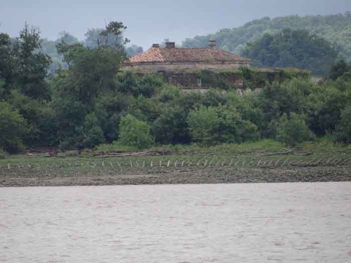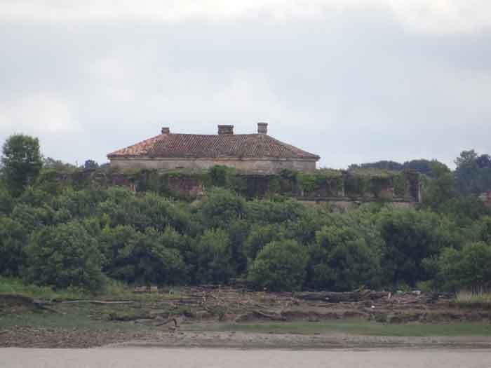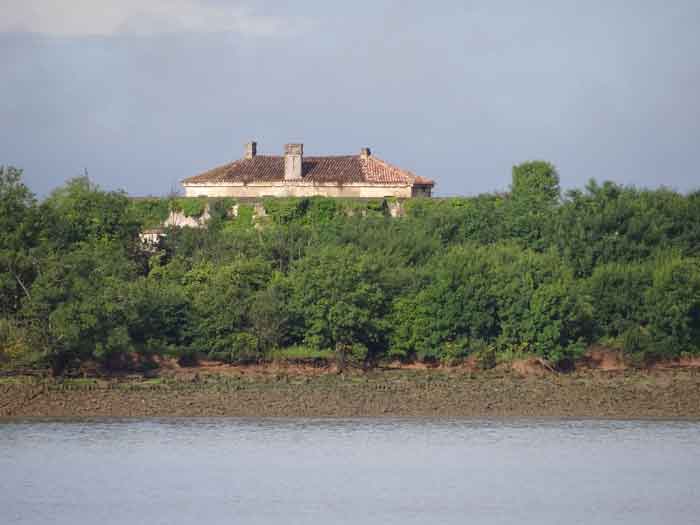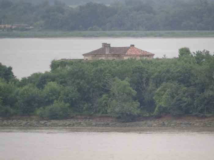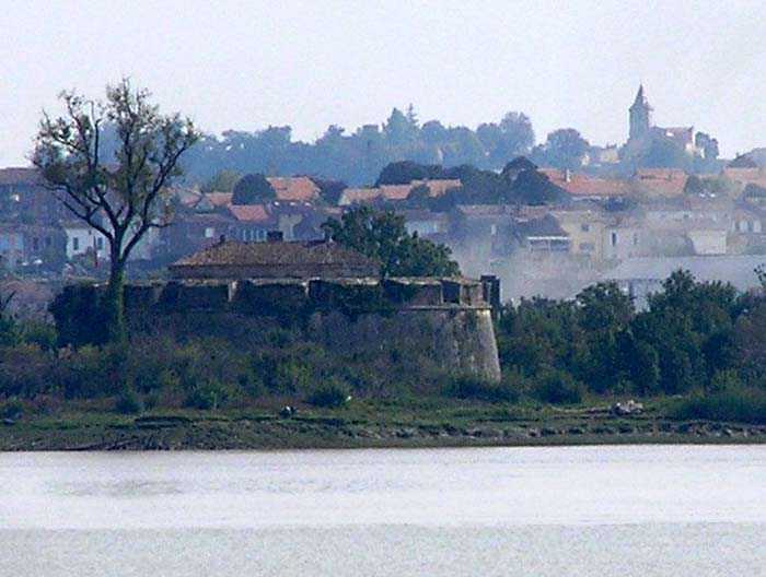 Dept 33 (Gironde), Gironde estuary, 40 km from Bordeaux. Built in 1690 on a 600 m long islet linking the Fort Médoc and the citadel of Blaye, the old Fort Pâté, where at least its location was the subject of some attention. Oval in shape, this 12 m high gun tower is very unusual with its barracks occupying the center of the summit platform. In 1693, it was armed with 32 cannons. A ministerial dispatch dated January 17, 1888, required the War Department to leave 8 cannons and 5 22-cm howitzers (sic) there. According to the text of this dispatch, no expenditure relating to (planned) fortification work had (had) yet been incurred at that date (State A 1st emergency!). Therefore, an overhaul, the construction of an addition, or at least work was being considered. We were unable to find out more and the data is lacking. At most, we found a mention of a 4 x 95 mm armament in 1912. If this indication is real, the aerial views we were able to see do not reveal anything of the base of these cannons. It is therefore advisable to be cautious. The fort now appears to be abandoned. See Gironde.