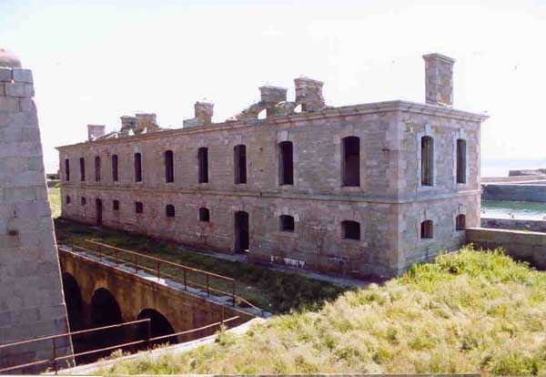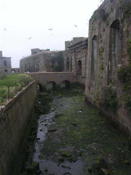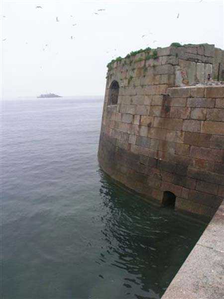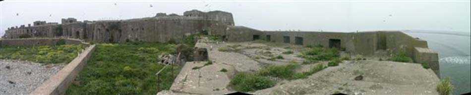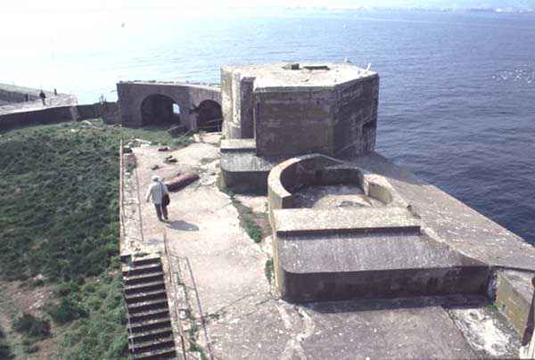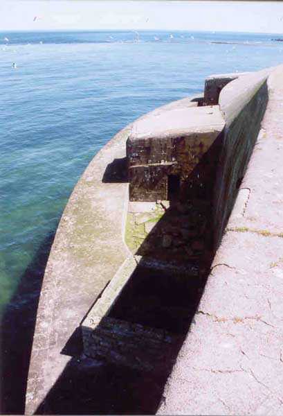 Place de Cherbourg, nord-est de la ville, 1779-1792. Le fort construit à la fin du XVIIIème siècle comprenait une enveloppe et un réduit séparés par un fossé aquatique, concept inédit que les plus grands du monde d'alors vinrent contempler. L'ensemble affectait la forme d'un fer à cheval dont les branches divergeaient. Le front de tête, fortement arrondi, était doté d'un épais parapet formant ressaut. La gorge, devant laquelle le fossé s'élargissait, mesurait 108 mètres de longueur avec, en son centre, une courtine de 36 mètres à sa base. La courtine était encadrée de deux bastions dont le prolongement des retours constituait l'arc de cercle du front de tête. La capitale du réduit, depuis de front de tête jusqu'à l'aplomb de l'entrée, faisait 58 mètres. La courtine était occupée par le casernement lequel donnait sur une cour de laquelle on avait vue sur l'arrière ouvert des vingt casemates à canons de l'hémicycle. Il y avait donc un air de famille avec l'ouvrage 1 de Querqueville. L'enveloppe extérieure disposait de plusieurs batteries constituant un ensemble ayant des actions dans tous les azimuts. Le fort connut de nombreuses variations dans son armement. Sans être exhaustif, relevons qu'organiquement et en attendant la mise en service du fort du Musoir Est, il fut fixé, à trente canons de 30 et autant d'obusiers de 22 c. En 1843, le fort fut remis à la Marine qui, en 1847, l'avait doté de 35 canons de 36 et de 24 obusiers de 22 c. Ces chiffres varièrent en fonction de l'amélioration des bouches à feu. En 1875 déjà, on envisagea de doter le fort d'une tourelle cuirassée. Vers 1890, l'armement peut-être décrit comme suit : 5 canons de 27 c modèle 1864-66 dans la partie gauche de l'hémicycle de casemates ; 5 canons de 24 c modèle 1870 dans la partie droite de l'hémicycle de casemates ; 3 canons de 47 mm T.R. au saillant I de l'enveloppe ; 4 canons de 19 c mle 1864-66 au saillant III de l'enveloppe ; 2 (4 ?) canons de 24 c modèle 1864 Te 1870 à hauteur du bastion I et braqués vers la passe Collignon. Le poste V des défenses sous-marines, disposant d'un feu fixe, était logé dans le bastion I. Un feu chercheur avait été établi dans le parapet de l'enveloppe sur front de tête, peu à droite de l'axe de la capitale. Un passage sur le fossé aquatique était d'ailleurs ménagé pour desservir ce feu et, bien avant lui, des pièces tirant à barbette. Des canons de 16 c ont aussi équipé le fort dans les années 1880-85, mais leur présence fut brève. Vînt alors la refonte complète du fort. La digue de l'Est étant construite, elle allait faciliter l'arrivée des matériaux. La majeure partie du fossé aquatique et la totalité de la cour du réduit allaient disparaître sous une chape de béton laquelle engloberait au passage la majeure partie de l'enveloppe extérieure. En fait seule l'entrée allait demeurer en place ; les moellons du parement de la courtine et des bastions à la gorge seront doublés d'une sérieuse épaisseur de béton. Le fossé aquatique sera réduit à couvrir la moitié de la face sud-est du bastion II (saillant III), restera tel quel devant la courtine et sa largeur sera fortement diminuée devant la face sud-est du bastion I, tout en contournant le saillant I sur une douzaine de mètres. L'agencement des locaux ne laissera subsister aucune trace de ce qui précédait. Tout au plus peut-on estimer que le couloir de circulation à l'arrière des chambrées constitue la base de l'ancienne cour. Ce qui n'a pas subi de modifications en revanche, c'est la courtine au centre de laquelle se trouve le pont-levis de l'entrée, pont dit "à la Lacoste". Le tablier du pont de l'entrée principale ayant disparu, il convient d'entrer dans le fort par l'entrée ouest. Après avoir franchi le portail du ravelin, ravelin portant l'emprise du fort à 127 m en capitale, il faut passer entre le fort et un bâtiment où se concentraient de nombreux magasins et se diriger vers le saillant I. Entre ce saillant et son opposé, le III, le fort mesure 175 m hors tout. Dans l'arc de ce saillant I, se trouvent les trois dernières embrasures subsistantes de l'enveloppe originelle. Sur leur droite et jusqu'à l'entrée ouest, une surélévation de béton forme terrasse. Nous avons là trois époques d'aménagements. De la première batterie il demeure le sol et les deux traverses en béton avec niches latérales pour les coups du sûreté. Elles séparaient trois plates-formes en léger décrochage pour, chacune, 2 canons de 47 T.R., soit un total de six pièces. Ensuite, les murs en arc de cercle sont les limites des deux cuves pour canon de 75 mle 1908 que les Français ont placé là dans l'Entre-deux-guerres. Enfin, coiffant la cuve de gauche, un petit poste d'observation est un de ces "Sonderbauten" dont les Allemands ont constellé le littoral Atlantique. Cette terrasse et l'escarpe de ce qui fut le réduit convergent vers le porche de l'entrée latérale. Les galeries ont, pratiquement toutes, leur voûte en anse de panier. Leurs dimensions, une hauteur de 6,50 m pour une largeur de 4,50 m, sont en elles mêmes exceptionnelles. On dirait qu'à l'inverse de toute construction que l'on élève de bas en haut, ici, le niveau a été pris depuis la terrasse supérieure du fort existant, niveau duquel on a retranché une épaisseur de trois mètres de béton et que, cette dalle étant jugée suffisante, le solde de la hauteur allait tout simplement conditionner les dimensions des galeries sous-jacentes. On a donc considéré l'aménagement de haut en bas. Il n'est guère aisé de décrire le réseau de galeries. Leurs axes généraux tracent un énorme "W" dont la ligne des dessus des jambages constituerait le couloir de circulation à l'arrière des chambrées de la gorge ; chaque jambage possédant sa cohorte de diverticules et la pointe centrale étant en retrait. Commençant la visite par l'entrée ouest, les premiers locaux su