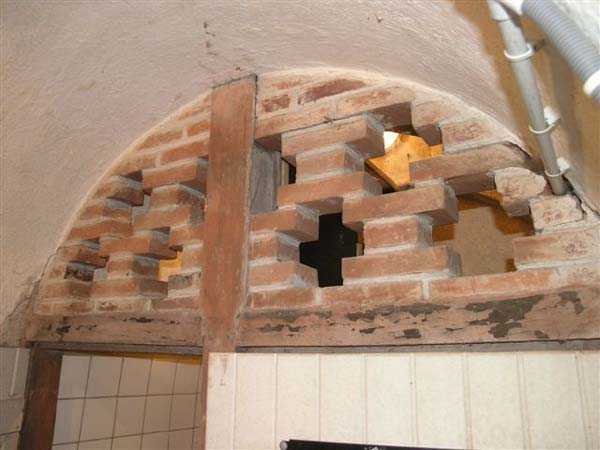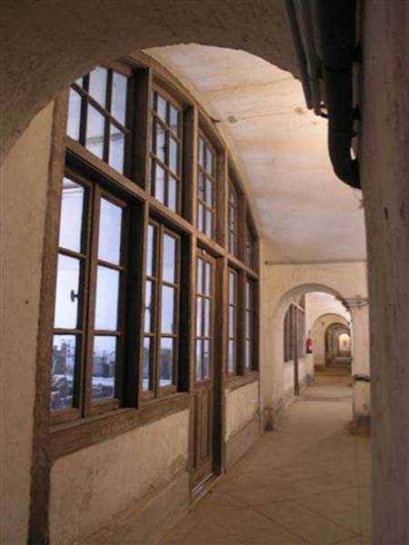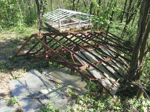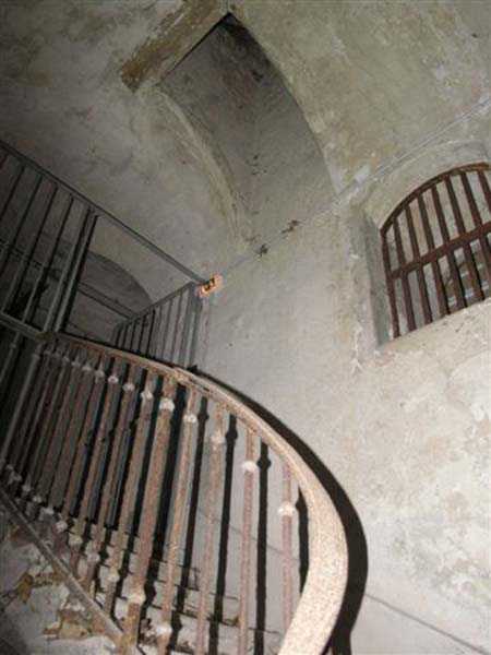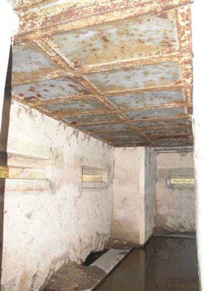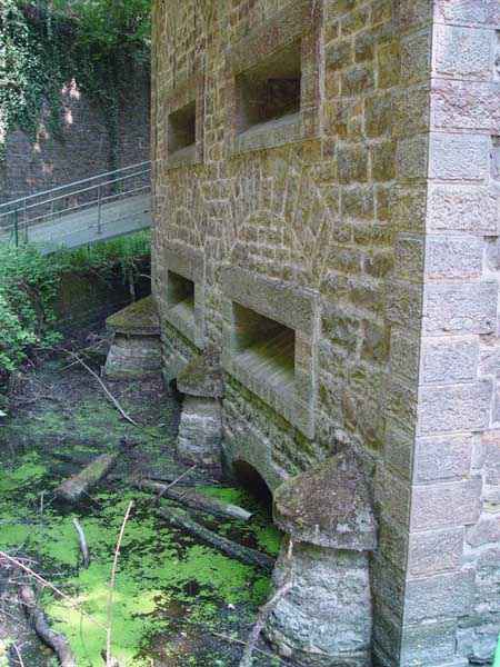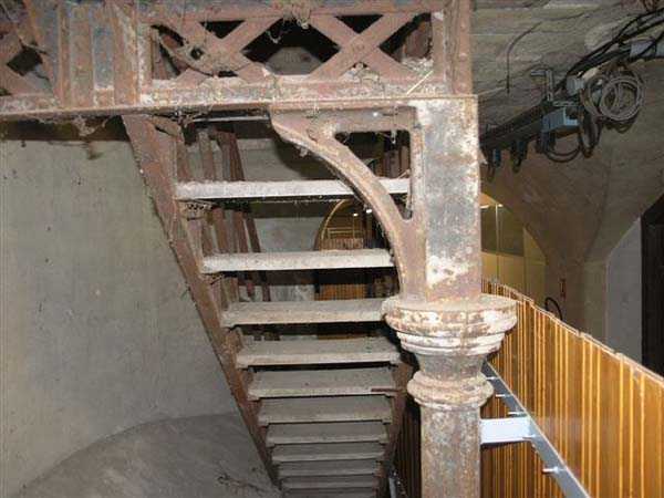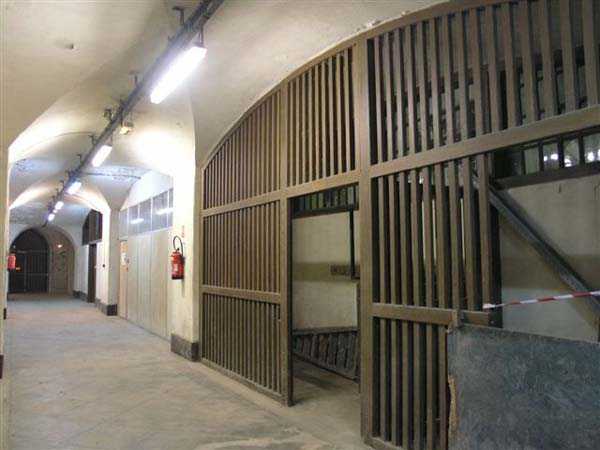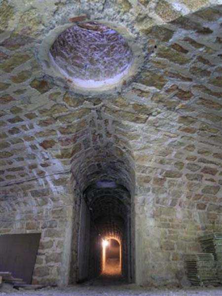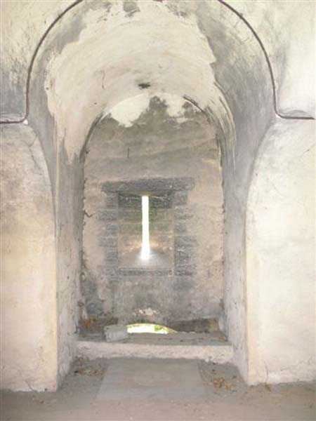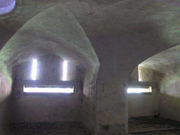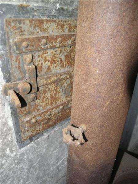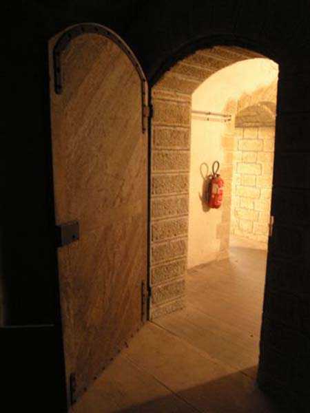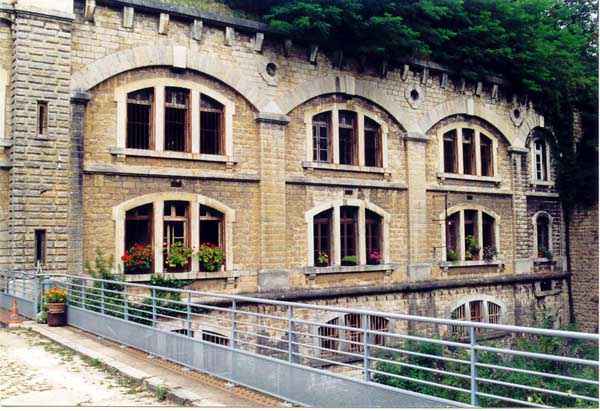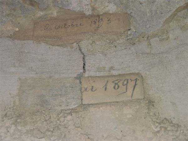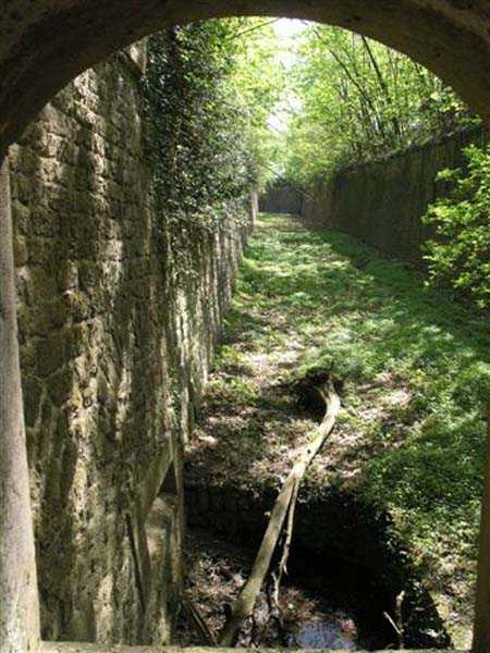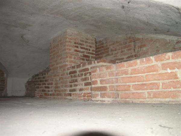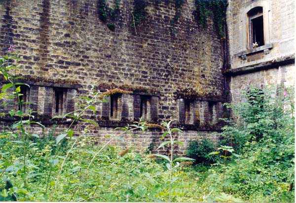 Fortress of Lyon, north-west of the city, 1883-1886. 380 m above sea level. About 300 men and about twenty artillery pieces. It monitored the road coming from Bourges. Before any description, it should be noted that we have here an exceptional fort in every way. Not only is it full of peculiarities, but of all French forts for the period 1874-1886, it is the one that has preserved the most original elements. To avoid repeating many times, let the reader know that each time an asterisk appears, the indicated element is to be considered extremely rare or even unique. It is a pentagonal fort whose perimeter has an outgrowth forming a sixth salient in the extension of the right counterscarp casemate*. Consequently having a sixth front, about forty meters long, it was deemed appropriate to defend it with a 12 breech-loading cannon installed in the extension of a corridor forming a gun cellar perpendicular* to that of the right counterscarp casemate. The embrasures of these counterscarp casemates are particular and different from one casemate to another*. The left counterscarp casemate has six embrasures for musketry fire, while the right one had in its center a casemate housing a 12 breech-loading cannon and, probably, a revolver cannon beside it, a casemate framed by two small lodges each containing only one rifle embrasure*. Behind the outer lodge is, as the enameled plate attests, a small magazine for projectiles and cartridges with its complete fittings*. The entrance is protected by a small ravelin on the glacis. Majestic, with a festooned pediment, the entrance opens in the center of the barracks which comprises, over seven bays + two halves, no less than three levels occupying the entire depth of the gorge curtain*. The basement is a real journey through time. One can contemplate an intact bread oven there, just waiting to return to service. Behind this oven, an extension creates an ideal space for letting dough rise*. Not far away are the kitchens. These still have their original tables* as well as two François-Vaillant stoves model 1886*. One has a capacity of 500 liters in 4 cauldrons of 125 liters and the second, smaller, has two cauldrons of 50 liters, namely one of cast iron and the other riveted*. A well topped with a pump of brand Livet, Model 1904*, adjoins a washroom that has retained its plumbing including a robust tap*. The circulation corridor of this basement runs along a 500 m³ cistern whose accesses are from the ground floor. In the basement corridor, one can still observe the gauge of this cistern with its float*. The ground floor houses a second water pump, drawing from the aforementioned cistern. Also of brand Livet, it bears a plate indicating 1885* as the year of manufacture. This level shows two pretty stairwells leading to the upper floor and officers' latrines that have retained their enameled plate*. On the first floor, on the left, an artillery magazine includes lamp hatches of a probably non-regulation model, with an evacuation orifice for combustion gases*. An ironwork staircase* allows access to the infantry sally port at the top of the barracks. From there, it is easy to notice the many original skylights which, for the most part, have their lightning rod devices*. The barracks probably have 95% of their original fittings, solid doors, lattice doors, interior and exterior windows, including locks, latches, bolts, window catches, bolts, etc. Also numerous are the enameled plates with indications of the purposes of the rooms. The powder magazine, with a capacity of 51 tons, is installed to the left of the barracks. If there had not been at least one iconoclast within the local shooting club to misdirect, more or less unfortunately, a few bullets into the tempered glass panes, the latter would be intact, as would the flameproof grids of the various ventilations. On the other hand, fittings and hardware in both iron and bronze are present, as well as the floor and its rafters at the bottom of the partitions*. In the extension of the entrance porch, the main tunnel, with its segmental arch vault, shows a paved roadway bordered by sidewalks. Before reaching the rampart street, we find on the left and right a room with sliding doors suspended from a rail. The left room bears an enameled plate indicating the forge*. The rampart street between salients I and V describes an almost perfect semicircle. This street runs alternately along an enveloped traverse, followed by a rooted traverse. However, in the center and behind front III-IV, there is a two-level traverse. This one has the peculiarity of having not a basement, but indeed a first floor*! The latter also has a large window overlooking the rampart street. The rooted traverses also have a floor, but by force of circumstance, it has no window. In all four cases, the floors are reached by elegant staircases with superbly adjusted steps and provided with their original railings*. Is it necessary to specify that here too, the fittings are complete, including the trapdoor flaps that allow the passage of material or ammunition from the ground floor to the first floor? The enveloped traverses mostly have their original doors opening under the vault occupied by fixed shutters*. From the end of each rooted traverse, one gains access via a shaft either to a wing (salients II and IV) or to the double caponier (salient III). A third wing, at salient V, is reached via a shaft running along the left side of the last enveloped traverse of the rampart street. We were unable to access this last defensive organ, so the following comment concerns only those of salients II, III and IV. The curves of the vaulted passages and rooms of the caponiers give no hint of their singular exterior appearance, parallelepiped, almost Bauhaus. The segmental arches of the embrasures lacking visors contribute much less to breaking these right angles than the spur buttresses* reinforcing the base of the piers of their faces. These spur buttresses