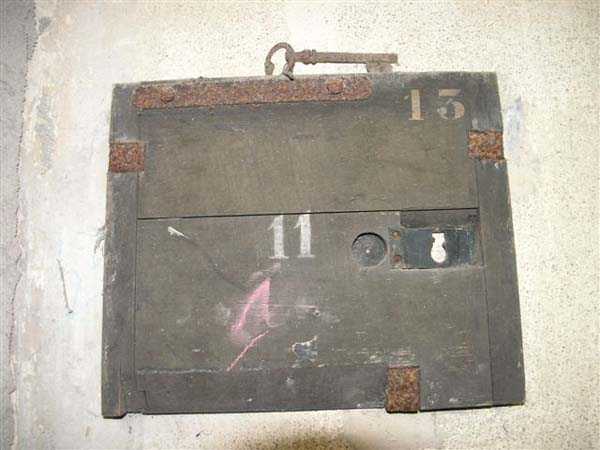 Festung von Lyon, Nordwesten der Stadt, 1883-1886. 380 M/ü M. Etwa 300 Mann und etwa zwanzig Artilleriegeschütze. Es überwachte die Straße aus Bourges. Vor jeder Beschreibung sei darauf hingewiesen, dass es sich hier um eine in jeder Hinsicht außergewöhnliche Festung handelt. Nicht nur ist sie voller Besonderheiten, sondern von allen französischen Forts für die Zeit 1874-1886 hat sie die meisten originalen Elemente erhalten. Um nicht ständig zu wiederholen, sollte der Leser wissen, dass jedes Mal, wenn ein Sternchen erscheint, das bezeichnete Element als äußerst selten oder gar einzigartig zu betrachten ist. Es handelt sich um ein fünfeckiges Fort, dessen Umfang einen Auswuchs aufweist, der einen sechsten Eckpunkt in der Verlängerung der rechten Kurtinenkasematte bildet*. Da es folglich eine sechste Front von etwa vierzig Metern Länge hatte, hielt man es für angebracht, diese durch eine 12-Kaliber-Hinterladerkanone zu verteidigen, die in der Verlängerung eines als Kanonenkeller dienenden Gangs installiert war, der senkrecht* zu dem der rechten Kurtinenkasematte verlief. Die Scharten dieser Kurtinenkasematten sind besonders und von Kasematte zu Kasematte unterschiedlich*. Die linke Kurtinenkasematte weist sechs Scharten für Musketenfeuer auf, während die rechte in ihrer Mitte eine Kasematte mit einer 12-Kaliber-Hinterladerkanone und wahrscheinlich einer Revolverkanone daneben besaß, wobei diese Kasematte von zwei Logetten eingerahmt war, von denen jede nur einen einzigen Gewehrscharten* hatte. Hinter der äußeren Logette befindet sich, wie die emaillierte Platte bezeugt, ein kleines Magazin für Geschosse und Kartuschen mit kompletter Schließanlage*. Der Eingang wird durch einen kleinen Ravelin auf den Glacis geschützt. Majestätisch, mit geschmücktem Giebel, öffnet sich der Eingang in der Mitte der Kaserne, die auf sieben Jochen + zwei halben nicht weniger als drei Stockwerke umfasst und die gesamte Tiefe der Kehlkurtine* einnimmt. Der Keller ist eine echte Zeitreise. Man kann dort einen intakten Backofen bewundern, der nur darauf wartet, wieder in Betrieb genommen zu werden. Hinter diesem Ofen schafft eine Verlängerung einen idealen Raum zum Gehenlassen des Teigs*. Nicht weit davon entfernt befinden sich die Küchen. Diese haben immer noch ihre originalen Tische* sowie zwei François-Vaillant-Öfen Modell 1886*. Einer hat ein Fassungsvermögen von 500 Litern in 4 Kesseln zu 125 Litern und der zweite, kleinere, hat zwei Kessel zu 50 Litern, nämlich einen aus Gusseisen und den anderen genietet*. Ein Brunnen mit einer Pumpe der Marke Livet, Modell 1904*, grenzt an einen Waschraum, der seine Installationen, einschließlich eines robusten Wasserhahns*, erhalten hat. Der Verkehrsgang dieses Kellers verläuft entlang einer Zisterne von 500 m³, deren Zugänge vom Erdgeschoss aus erfolgen. Im Kellergang kann man noch den Peilstab dieser Zisterne mit seinem Schwimmer* beobachten. Das Erdgeschoss beherbergt eine zweite Wasserpumpe, die aus der oben genannten Zisterne schöpft. Auch sie stammt von der Marke Livet und trägt eine Platte mit der Herstellungsjahrzahl 1885*. Diese Ebene zeigt zwei schöne Treppenhäuser, die zum oberen Stockwerk führen, und Offizierslatrinen, die ihre emaillierte Plakette* bewahrt haben. Im ersten Stock, links, umfasst ein Artilleriemagazin Lampendurchlässe eines wahrscheinlich nicht vorschriftsmäßigen Modells mit einer Öffnung zur Abführung der Verbrennungsgase*. Eine schmiedeeiserne Treppe* ermöglicht den Zugang zum Infanterieausgang auf dem Dach der Kaserne. Von dort aus lässt sich leicht die Vielzahl der originalen Oberlichter erkennen, die größtenteils mit ihren Blitzableitervorrichtungen* ausgestattet sind. Die Kaserne besitzt wahrscheinlich 95 % ihrer originalen Schließanlagen, massive Türen, Gittertüren, Innen- und Außenfenster, einschließlich Schlösser, Riegel, Schnapper, Fenstergriffe, Bolzen usw. Auch emaillierte Schilder mit Hinweisen auf die Bestimmung der Räume sind zahlreich vorhanden. Das Pulvermagazin mit einem Fassungsvermögen von 51 Tonnen befindet sich links von der Kaserne. Wenn nicht mindestens ein Bilderstürmer aus dem örtlichen Schützenverein mehr oder weniger unglücklicherweise ein paar Kugeln in die gehärteten Scheiben gelenkt hätte, wären diese noch intakt, ebenso wie die Flammenschutzgitter der verschiedenen Belüftungen. Andererseits sind die Schließanlagen und Beschläge aus Eisen und Bronze ebenso vorhanden wie der Fußboden und seine Sparren an der Unterseite der Trennwände*. In der Verlängerung des Eingangsportals zeigt der Haupttunnel mit seinem segmentbogigen Gewölbe eine gepflasterte Fahrbahn mit Bürgersteigen. Bevor man die Wallstraße erreicht, findet man links und rechts einen Raum mit Schiebetüren, die an einer Schiene hängen. Der linke Raum trägt ein emailliertes Schild, das die Schmiede* anzeigt. Die Wallstraße zwischen den Eckpunkten I und V beschreibt einen fast perfekten Halbkreis. Diese Straße verläuft abwechselnd entlang einer eingebetteten Traverse, gefolgt von einer eingewurzelten Traverse. Allerdings findet man in der Mitte und hinter der Front III-IV eine zweistöckige Traverse. Diese hat die Besonderheit, nicht einen Keller, sondern vielmehr ein erstes Stockwerk* zu haben! Letzteres verfügt außerdem über eine große Fensterfront zur Wallstraße. Die eingewurzelten Traversen haben ebenfalls ein Stockwerk, aber dieses hat naturgemäß kein Fenster. In allen vier Fällen erreicht man die Stockwerke über elegante Treppen mit hervorragend angepassten Stufen und originalen Geländern*. Ist es nötig zu erwähnen, dass auch hier die Schließanlagen komplett sind, einschließlich der Klappenverschlüsse, die den Durchgang von Material oder Munition vom Erdgeschoss in den ersten Stock ermöglichen? Die eingebetteten Traversen haben meist ihre originalen Türen, die unter dem Gewölbe öffnen, das seinerseits mit festen Jalousien* besetzt ist. Vom Ende jeder ein