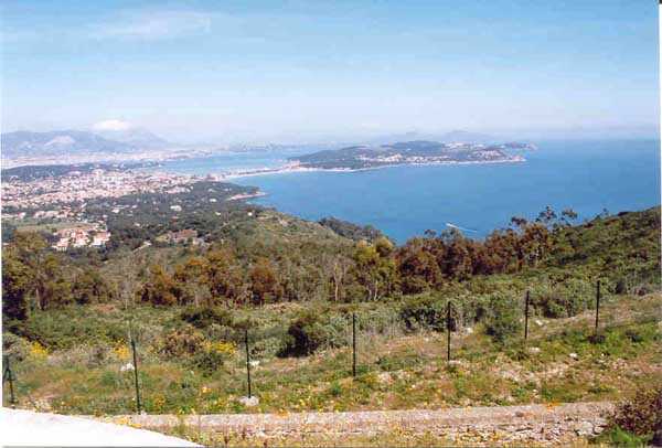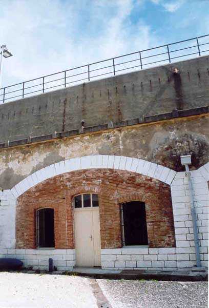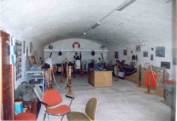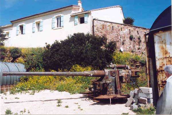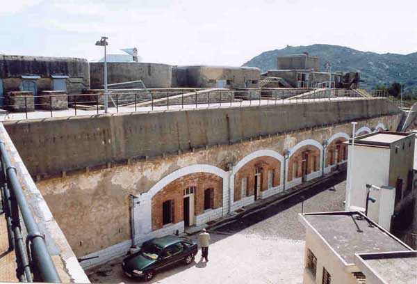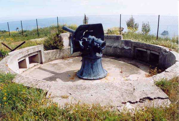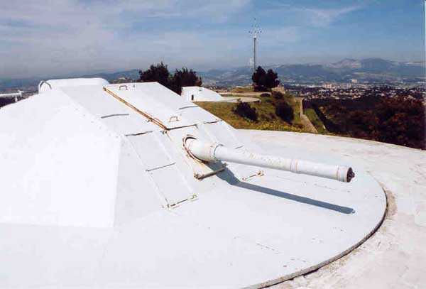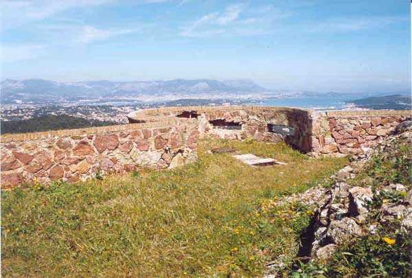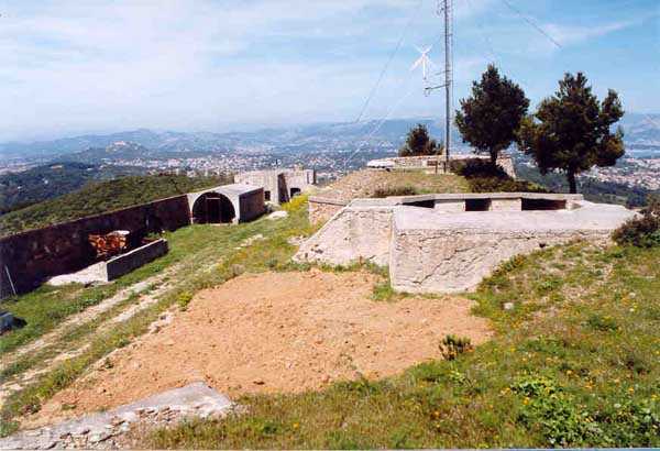 Fortress of Toulon, southwest of the city, 1878-1879. 196 m/alt. 176 men and 13 guns including 3 of 24 c, 8 of 19 c and 2 of 16 c. It was established on the site of an older battery and takes the general shape of a chevron, with the left wing being slightly longer than the right. This left wing features three examples of rare diamond-shaped traverse shelters (or square on point, depending on your view!). The right wing had two others, but in 1905-1907 the entire right wing was topped with a 2.5 to 3 m layer of concrete over the six bays of the barracks. The battery's armament is then modified to 6 guns of 24 c (2 models) and 4 of 19 c. In the gorge recess is sheltered the powder magazine. Notably low-ceilinged (2.4 m), it is also distinguished by the fact that the central lamp embrasure is slightly lower than its neighbors. Note also that the two short sides of the chevron branches are equipped at their center with a tower from the terrace of which the foot of the scarp could be covered. The rest of the perimeter makes do with its semi-detached scarp for the close defense of the battery. In 1912, the armament consists of 4 x 240 mm quick fire, 2 x 24 c and 4 x 19 c. First in 1933, then in 1943, the battery became an anti-aircraft battery. Around 1950, four armored cupolas with a 105 mm SKC 32 gun from Lorient were installed. These German materials are accompanied by a cupola for a 6.58 m long rangefinder. Until 1957, the battery would be an anti-aircraft school before serving for about ten years as a commando operations base. Remaining Navy land, it is currently (04/2006) conceded to the association G.M.C. (Groupe Military Conservation) which wishes to create an artillery museum there and has already set up some beautiful - and rich - exhibition rooms. In addition to the still-in-place cupolas of the anti-aircraft school, several guns have been recovered, including one 95 mm Mle 1888 brought from the fort of Saint-Elme. The site, very well maintained, paradoxically suffers from its exceptional situation. Away from everything, in the middle of nature, offering fantastic views, particularly of the south of Saint-Mandrier, access is regulated and limited during the year due to fire risk. The battery and its surroundings are considered a red zone, therefore access prohibited, from 15/06 to 15/09 each year.