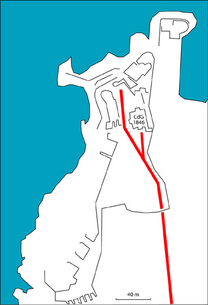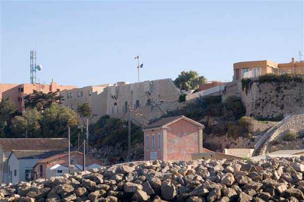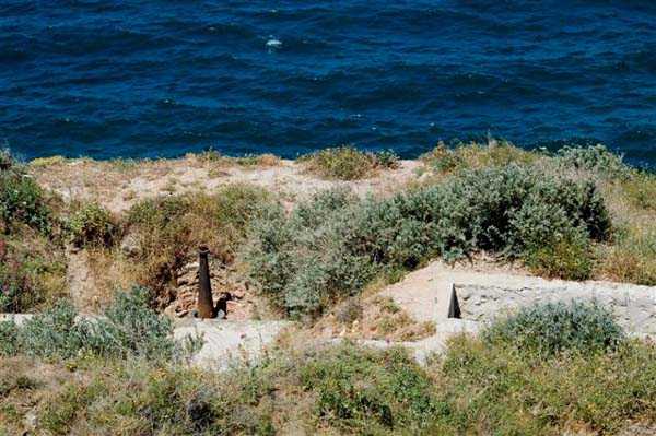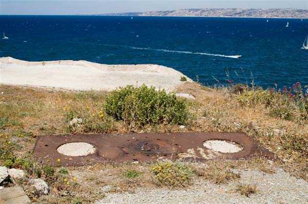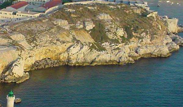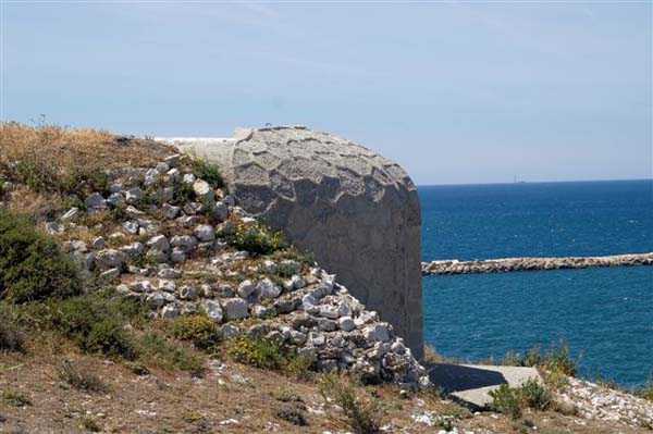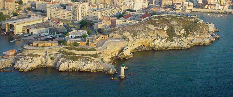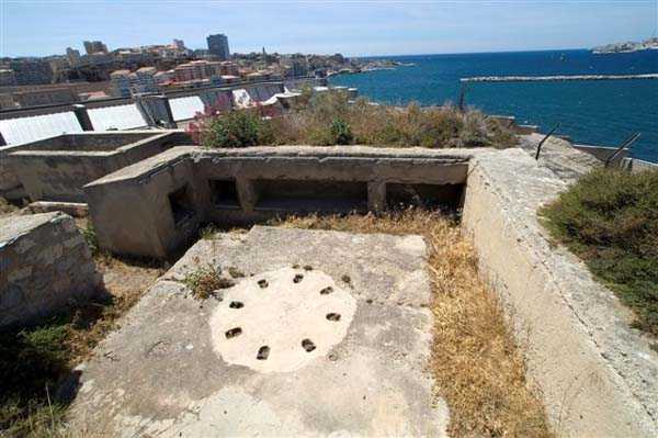 Fortress of Marseille, south of the city. 30 m/asl. Old battery, dating from 1859, located at the entrance of the port and reorganised in 1877-1878. It will then be armed with 3 G guns 19 cm Mle 1878 on G PC carriage and one 19 cm Mle 1875-76 gun on G PA carriage. It consists of a reduit flanked by 2 lines of gun positions including the southern one with 4 emplacements. The reduit, a tower Mle 1846 no. 1 out of standard (longer and with wing walls), is of an immaculate white and still occupied by the Navy (05/2006). From the battery remain two hollow traverses whose entrance door is particularly small. For the rest, the French brought quite a few modifications here in 1939 and the Germans installed an artillery battery in casemates. Sometimes designated as "battery of la Désirade". Access forbidden.