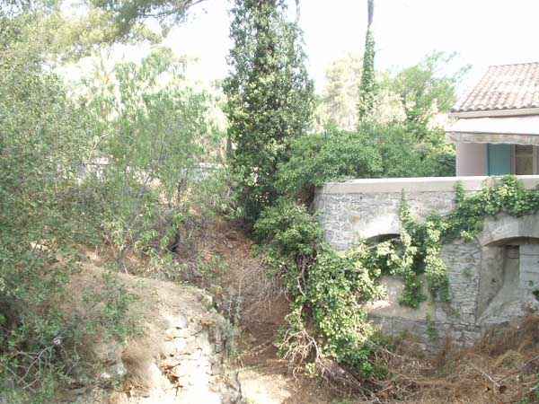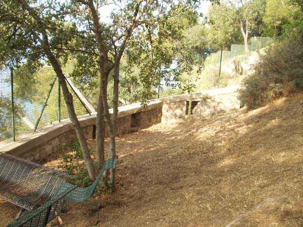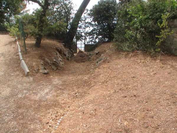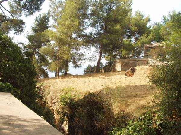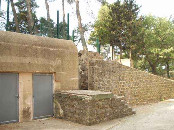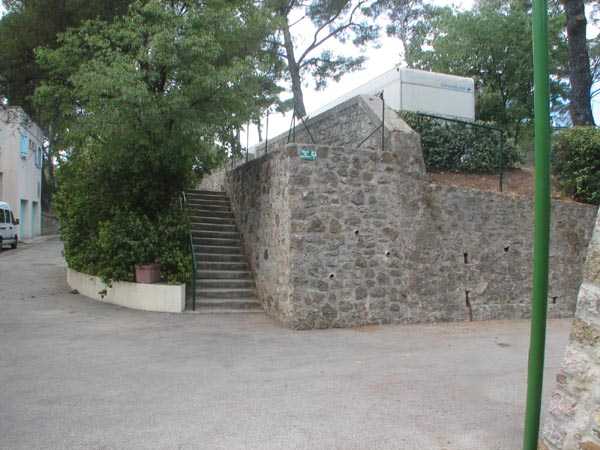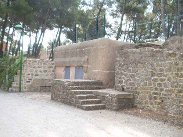 Fortress of Toulon, east-southeast of the city, 1893. 46 m/alt. Coastal battery located 1,000 m east of Pointe Sainte-Marguerite. It has its own defensive perimeter with a semi-detached scarp crowning a bastion on each side of the entrance. The latter, a simple passage with pilasters, leads to small barracks to the right of which a gallery gives access to a rock-cut magazine. This gallery extends to beneath the center of the head front, which it reaches via a hoist. The head front follows the cliff edge and includes no particular defense devices. The four emplacements for the 240 mm guns are served by a ramp. They are horseshoe-shaped. On site, there are concrete shelters, but based on the photos we have seen, we cannot guarantee that this concrete is French. Rarely mentioned. Private property. Not to be confused with the Pins battery about 6 km further east-southeast.