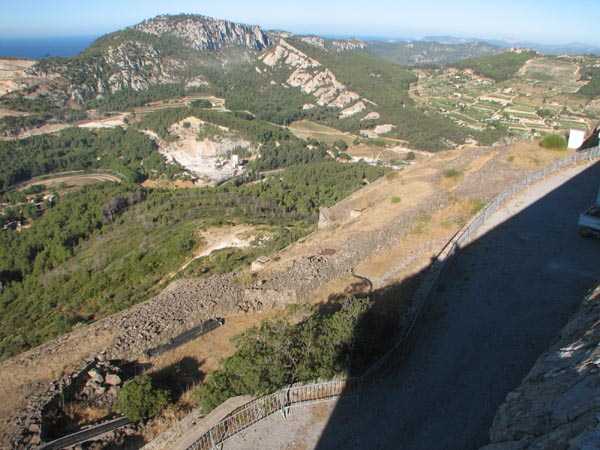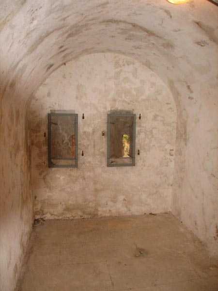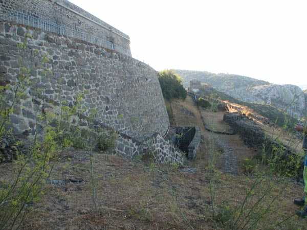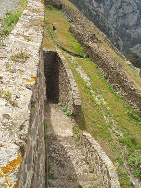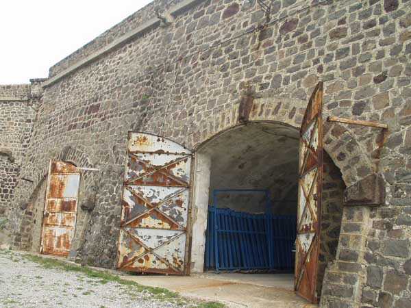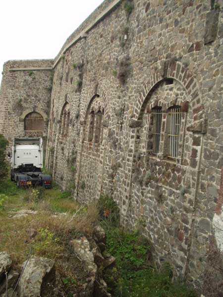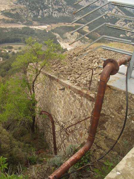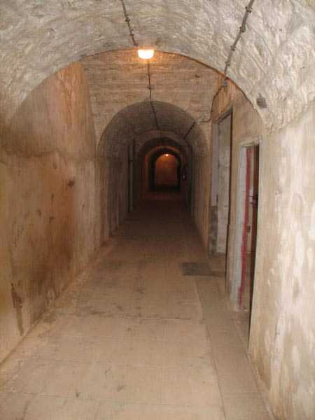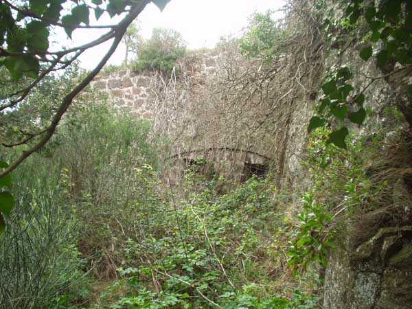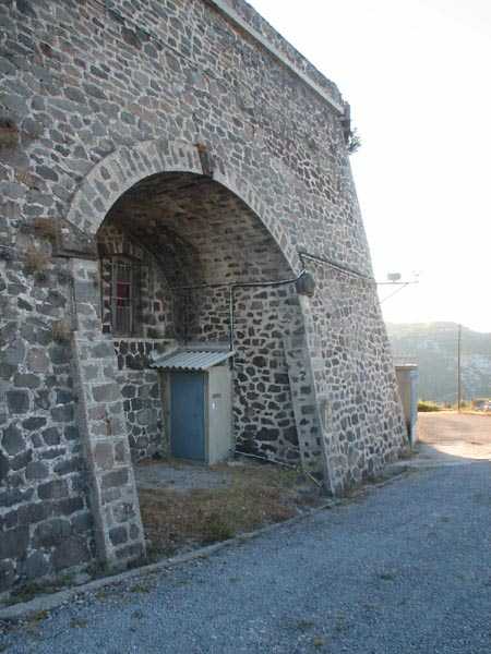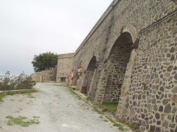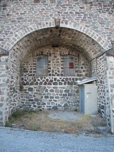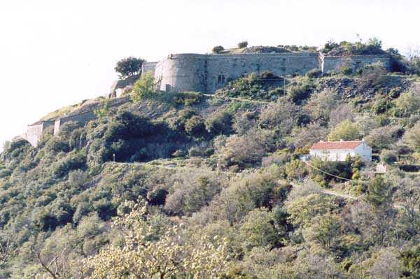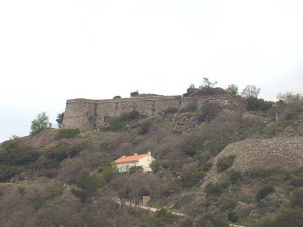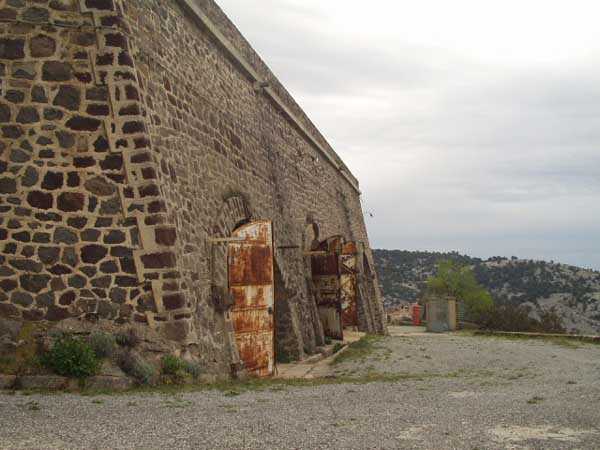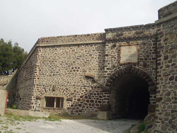 Fortress of Toulon, northwest of the city, 1893-1895. 406 m/alt. 360 men, 12 guns and 2 mortars. Commanded the road from Marseille and the gorges of Ollioules. Last work built in the fortress; in accordance with the usage of the time, it features numerous rooms excavated in the rock including magazines and a hoist. Its perimeter is extremely winding. Before the entrance, on the right, a ramp leads to a broad curtain wall onto which open four barracks rooms separated by thick rock piers. The extension of this curtain wall at elevation 386 becomes the ditch of the head front, a ditch whose ceiling is at elevation 390. The entrance is at elevation 386. It opens onto a narrow courtyard onto which open 4 set-back barracks rooms, a 3.2 m long visor protecting each facade. These barracks rooms are also separated by thick rock piers. The pediment of the entrance bears a cartouche which, singularly, instead of being rectangular and elongated is almost square. To the left after the entrance, a staircase gives access to a cistern of 10.5 m x 3.4 m which is flanked by a corridor leading to three rooms serving as a tea kitchen and infirmary, as well as to two small coffers flanking a small curtain wall about fifteen meters long, whose base is at elevation 370. Beyond the courtyard, whose elevation ranges from 386 at the entrance to 391.5, a broad gallery (4 m) serves besides the circulation corridor behind the barracks rooms, a rock-cut magazine, the double caponier of the head front, and emerges into the open air at elevation 395.5. On the exit side, its arched concrete buttresses have a very fine effect. It is then extended by a ramp going up to two lines of 4 artillery platforms forming a chevron, platforms located between elevations 399 and 406 and occupying the epicenter of the massif. The rightmost traverse houses the hoist connected to the rock-cut magazine. The few traverses crowning the fort are all concrete and rounded in shape, like those that can be seen at Bessoncourt. The double caponier of the head front has no action in front of its faces because the rock occupies what should be a flanking gallery. The entire west front is naturally defended by a cliff. Owned by the Navy, the fort is occupied by some municipal services (04/2006) and is in fairly good state of preservation.