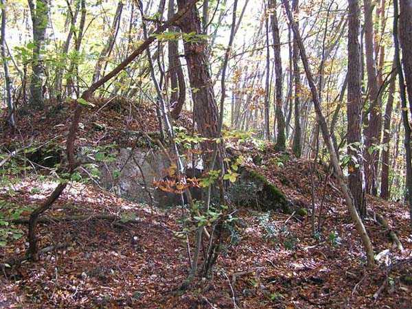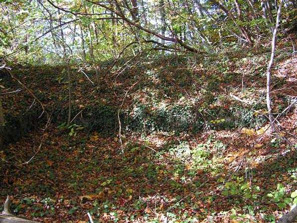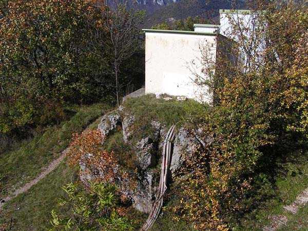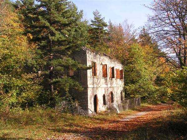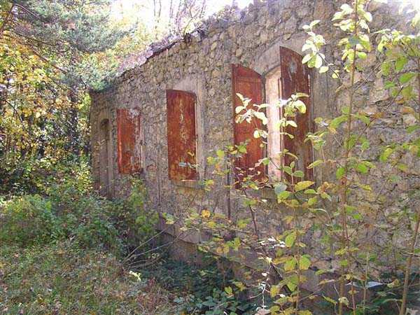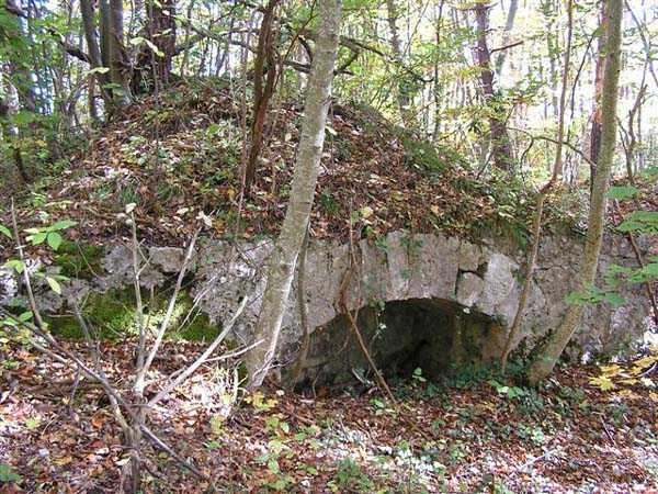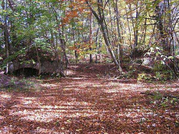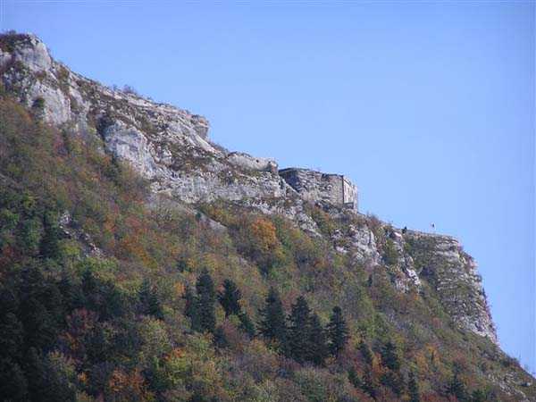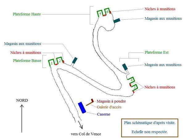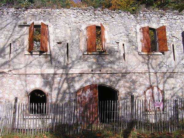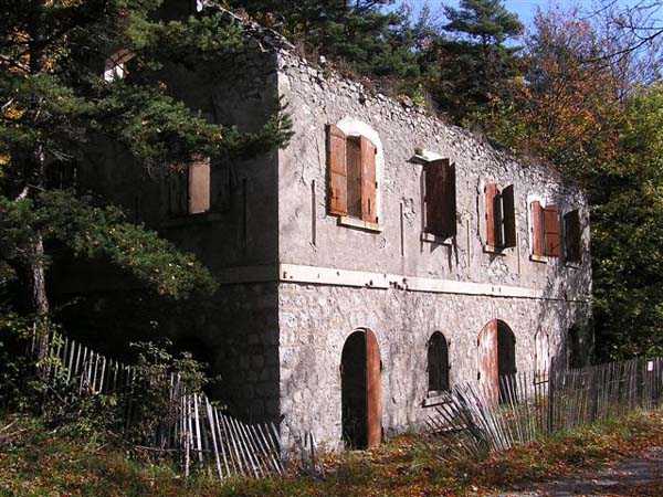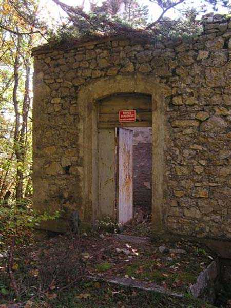 Fortress of Grenoble, north of the city, 1891. 1014 m/alt. This work, whose defensive barracks is a copy of that of the battery of Néron, comprises six artillery platforms in three pairs. These platforms are separated by solid traverses at the base of which ammunition niches have been fitted. Each pair of platforms also had a small magazine in the immediate vicinity. These three pairs are not on the same level. The low and high pair (1,050 m/alt) swept the north-northwest, while the intermediate one was oriented to the northeast. A small rock magazine opens about ten meters behind the barracks. Its access gallery, about fifteen meters long, leads to a storage room opening on the left, room of approximately 6 x 3 m. Its sheet metal roof has disappeared and an inscription dated 1893 can be discerned. This battery defended, together with that of Néron and Fort Saint-Eynard, the southwestern exits of the Chartreuse massif. Today (10/2006) the whole is in average condition and the barracks has its roof collapsed. Part of the site (high platform) houses equipment of the C.E.A. (Atomic Energy Commission). Apart from that, the battery is freely accessible, but the vehicle must be left at the Col de Vence parking lot (± an hour and a half walk).