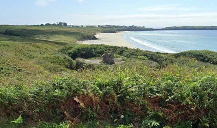 Place de Brest, dispositif des Blancs Sablons. Situé à l'extrémité nord de la plage du même nom, elle est visible depuis la route côtière. Elle est constituée d'un corps de garde modèle 1846 n° 3 dont la plate-forme sommitale a été arasée et cerné d'un fossé sec. Le linteau de l'entrée porte, gravée, la date 1849. L'intérieur est dans un triste état. Aucun emplacement de pièce n'a été repéré dans son environnement immédiat. Tout au plus avons-nous repéré un muret de béton, fortement ensablé, derrière lequel pouvait éventuellement prendre place une pièce légère. Nous ne pouvons dater ni ce muret, ni l'étêtement du corps de garde. Ce dernier est une propriété municipale. Nous ignorons la date de son déclassement. Voir dispositif des Blancs Sablons.