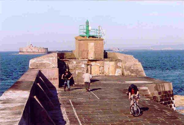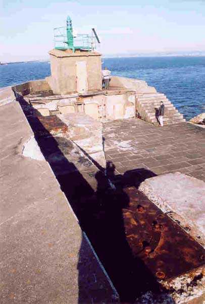 Place de Cherbourg, nord-nord-ouest de la ville, 1898. ¿ l'extrémité de la digue de Querqueville, on peut encore voir les sous-sellettes (06/2005) d'affûts de quatre canons de 47 mm T.R. Ils devaient battre de leurs feux les ponts d'éventuels navires qui tenteraient de franchir la passe ouest de la grande rade. L'extrémité de cette digue constitue un but de promenade très prisé aujourd'hui avec des vues imprenables sur le fort Chavagnac.