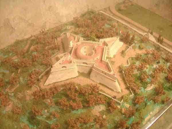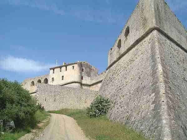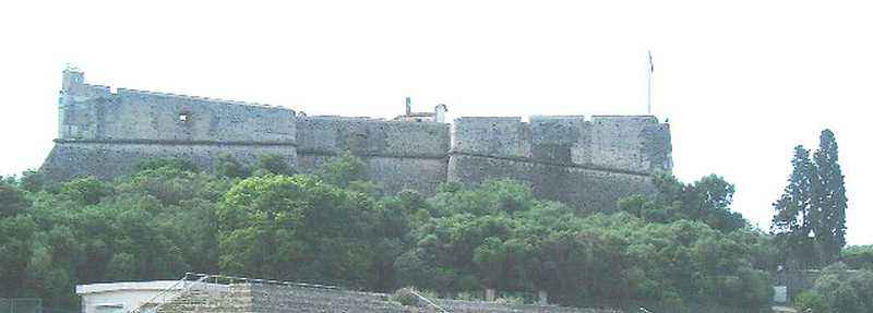 Stronghold of Antibes. 26 m/alt (the rampart walk is at 43 m/alt). Named Fort Championnet. Its origin dates back to 1553, when a circular tower erected by order of Henry II was completed. Between 1565 and 1585, a bastioned enclosure is erected around the tower. The bastions are very slender, separated by curtain walls smaller than the faces of the bastions and the base of the scarp has a significant batter. Its garrison in peacetime was around 50 men, a figure quadrupled in wartime. Under Louis XIII, then Louis XIV, outside the fort a bastioned front will be established on the land side. The fort will be proposed for decommissioning in 1888 under the reservation included in the text of the article concerning the stronghold of Antibes of this index. Classified as a historical monument in 1906, it has been open to the public since 1998.