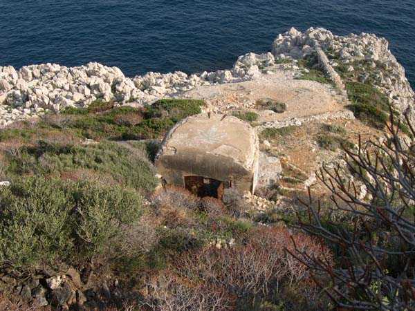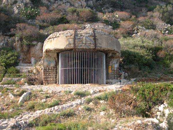 Fortress of Nice, east-south-east of the city. 59 m/alt. Battery located about 300 m south-east of that of Mont Boron. Established along the N7 (today N98), it is a coast battery, open at the gorge. This battery blocked the approach of the roadstead of Villefranche-sur-Mer. It occupies the location of an old Piedmontese battery, reused by the French after 1793 then abandoned by the Sardes in 1814. Around 1861, the position again attracts the attention of the Commission for Coast Defense. After the decommissionings of 1889, the roadstead of Villefranche-sur-Mer can only count on the batteries of Rascasse and Phare to block the approach to enemy vessels. A plan of 1920 indicates at Rascasse three firing steps, evidently for pieces on central pivot mounts. We found a mention of installation of 95 mm guns around 1900. The house of the battery keeper is situated north of the national road and the battery south. The lodging of the men is attached to the right of the line of the three pieces. Some tens of meters to the right of the battery, in the axis of the rocky point, one installed the infrastructures of a photoelectric post, probably around 1900. The plant is found under the national road, in front of it, at the level of the battery, one finds a cistern itself preceded by an observation post with a sentry box in sheet metal. Between this post and the battery begins a staircase zigzagging down the natural slope of the terrain until the combat post of the projector. The latter could be withdrawn into its day shelter dug into the rock beyond a chicane on the rear of the combat post. Singularly, the I.G.N. (National Geographic Institute) map 1/25,000 edition 2002 indicates at this place not the point of Rascasse, but well the point of Sans-Culottes. This same map indicates a point of Rascasse about 500 m north-east, but the battery is located well at that today designated Sans-Culottes. We do not have detailed information as to its current state; we think to know that the combat shelter of the projector is still visible, as well as the location of the battery, but the latter has been covered with a roof and shelters we know not what activity.
