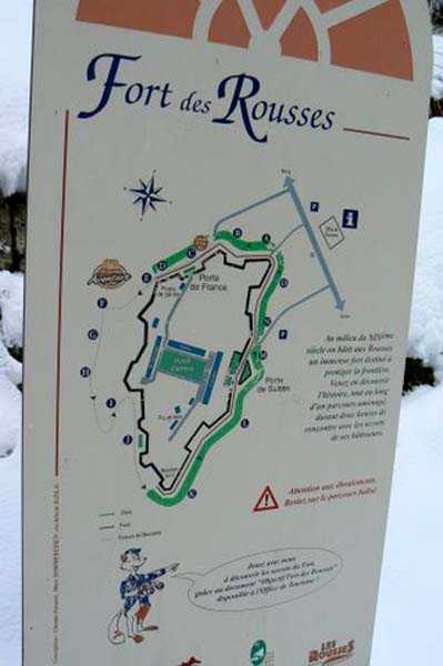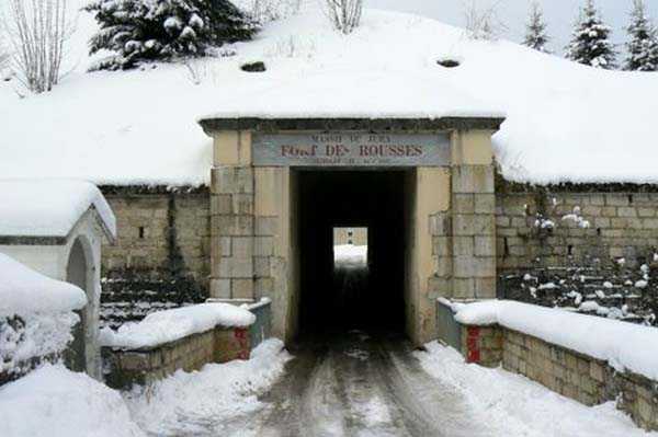 Sperre des Jura, Festung von Rousses, 1843-1862. 1156 M/ü M. Weite bastionierte Anlage, die bis 1874 115 Geschütze und 3500 Mann beherbergte, die in 3 riesigen Kasernen untergebracht waren. Zwischen 1879 und 1885, nach vielen Verzögerungen, erhielt sie Einrichtungen wie 2 Kavernenmagazine, 4 Felsunterstände, 1 unterirdische Kaserne für 1.100 Mann und 2 Linien von gedeckten Traversen. Im Jahr 1885 war sie mit 80 Geschützen bewaffnet und ihre Besatzung belief sich auf 1.688 Mann. 1899 wurde beschlossen, sie in die 3. Kategorie einzustufen und wurde fortan nur noch von etwa fünfzig Mann besetzt. 1985 auf den Namen "Fort Henry Martin" getauft. Teilweise für die Öffentlichkeit zugänglich, die 55.000 Räder Comté in einem 214 m langen Saal bewundern und deren Duft genießen kann.