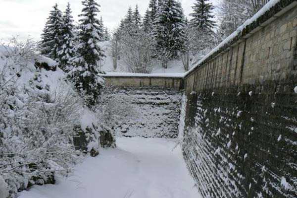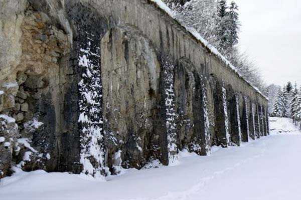 Jura Barrier, fortress of Rousses, 1843-1862. 1156 m/alt. Vast bastioned complex which housed, until 1874, 115 guns and 3500 men quartered in 3 enormous barracks. Between 1879 and 1885, after much procrastination, it received installations such as 2 cavern magazines, 4 rock shelters, 1 underground barracks for 1,100 men and 2 lines of cover traverses. In 1885, it was armed with 80 guns and its garrison amounted to 1,688 men. In 1899, it was decided to place it in 3rd category and was henceforth occupied by only about fifty men. Baptised in 1985 "fort Henry Martin". Partially open to the public who can admire and breathe in 55,000 wheels of Comté cheese in a 214 m long hall.