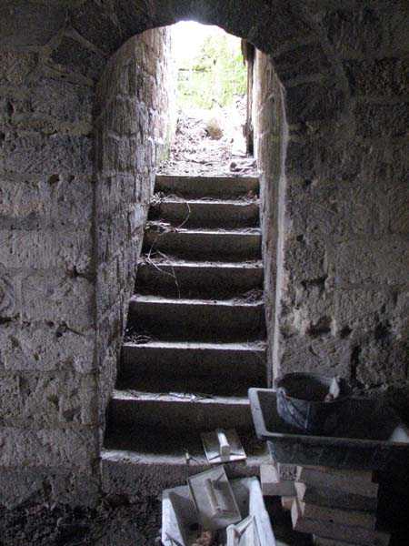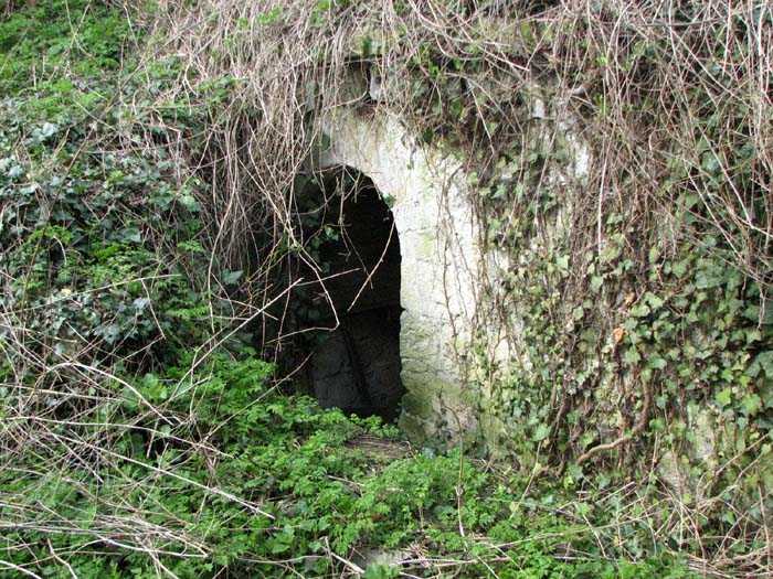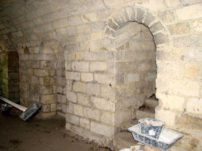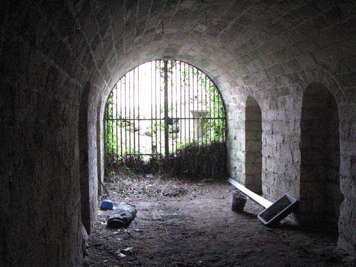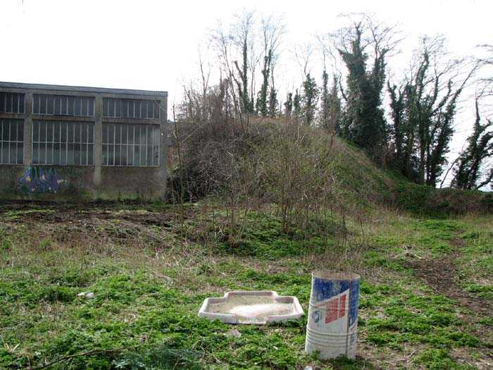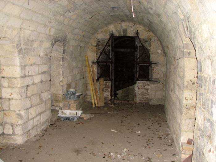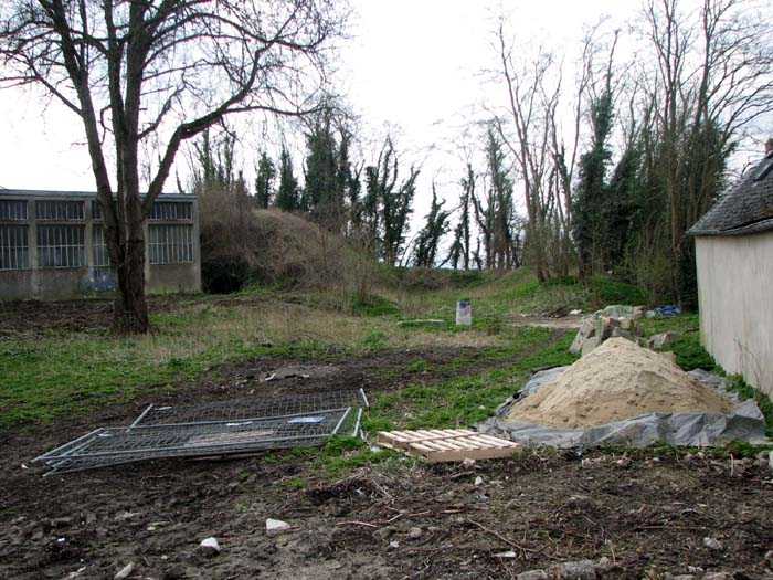 Position La Fère – Laon – Soissons, 1879. One of the 11 batteries of the garrison of Laon. It is located above the ramparts, between the leaning tower and the Soissons gate. There, a traverse shelter with four alcoves and two offset arms, is framed by two artillery platforms oriented to the southwest. On a plan, we found mention of two other pieces, directed towards the northwest and whose location would have been behind the Soissons gate in a place now occupied by an extensive flower bed. We found the traverse and its two platforms at the end of a fenced plot in view of the execution of a real estate construction project. We do not know if this battery will remain visible for much longer. (03/2008).