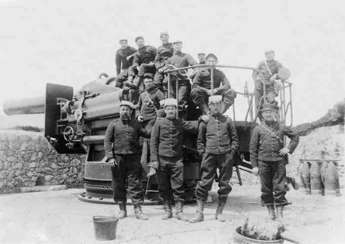 Bizerte. L’emplacement de la batterie de Roumadia est fixé dès 1888. Sa construction commence en 1894 et elle est terminée, et armée, l’année suivante. C’est donc, avec celle du Koudia, une des premières réalisées. Elle est située sur la rive droite, à 2500 mètres au sud-est de Bizerte, et à 71 mètres d’altitude. C’est un ouvrage pentagonal, de première génération, protégé par un fossé flanqué par 3 caponnières, dont une double. Il est doté d’un magasin caverne. Il est armé, à sa mise en service, de 4 canons G de 240 Mle 1884 sur affût G Mle 1890 PC. Sa batterie annexe, située à l’extérieur de l’enceinte est armée de 4 canons G de 95 Mle 1888 sur affût G Mle 1892. Il est modernisé en 1905. A cette occasion, les 4 canons de 240 sont remplacés par 3 canons du même modèle, appropriés pour affût G Mle 1901. Des abris de combat modernes, du modèle adopté par la CEPAC en 1901, sont réalisés. La batterie annexe voit ses affûts Mle 1892 remplacés par des affûts Mle 1904. Avec la batterie de Ben Negro, construite à proximité immédiate, il rassemble alors 11 pièces de 240 à tir rapide et 4 canons de 95. Le poste photo-électrique du Feu de la Carrière, équipé d’un projecteur de 90, et situé à 700 mètres au nord-est de l‘ouvrage, assure l’éclairage pour le tir de nuit. Le poste de commandement du groupe Est (ou sud) du front de mer, est également situé à proximité. L’ouvrage reste armé pendant toute la durée de la Première Guerre mondiale, sauf les 95 de la batterie annexe qui sont renvoyés en France. En 1927, il reçoit la pièce 1 de la batterie de Ben Negro, modernisée avec 4 canons de 240 sur affût Mle 1901-21 (voir l’articulet sur cette batterie). Après la Seconde Guerre mondiale, la batterie de Roumadia sert pour l’entraînement de la DCA de Bizerte. De nos jours, la batterie assez défigurée, est toujours utilisée par l’armée tunisienne. Autre appellation : batterie du Roumadia. Der Standort der Batterie Roumadia wird bereits 1888 festgelegt. Ihr Bau beginnt 1894 und sie ist im folgenden Jahr fertiggestellt und bewaffnet. Sie ist also, zusammen mit der von Koudia, eine der ersten realisierten. Sie liegt am rechten Ufer, 2500 Meter südöstlich von Bizerte und auf 71 Meter Höhe. Es ist ein fünfeckiges Werk der ersten Generation, geschützt durch einen Graben, der von 3 Kaponnieren flankiert wird, darunter eine doppelte. Es ist mit einem Kavernenmagazin ausgestattet. Bei seiner Indienststellung ist es mit 4 G-Kanonen 240 Mle 1884 auf Lafette G Mle 1890 PC bewaffnet. Seine Neben- batterie, außerhalb der Umfriedung gelegen, ist mit 4 G-Kanonen 95 Mle 1888 auf Lafette G Mle 1892 bewaffnet. Es wird 1905 modernisiert. Bei dieser Gelegenheit werden die 4 Kanonen 240 durch 3 Kanonen desselben Modells, geeignet für Lafette G Mle 1901, ersetzt. Moderne Kampfunterstände nach dem 1901 von der CEPAC angenommenen Modell werden errichtet. Die Neben- batterie erhält anstelle der Lafetten Mle 1892 Lafetten Mle 1904. Zusammen mit der in unmittelbarer Nähe erbauten Batterie Ben Negro vereint es dann 11 Schnellfeuergeschütze 240 und 4 Kanonen 95. Der photoelektrische Posten des Feu de la Carrière, ausgerüstet mit einem 90-cm-Scheinwerfer und 700 Meter nordöstlich des Werkes gelegen, gewährleistet die Beleuchtung für Nachtschießen. Der Gefechtsstand der Ost- (oder Süd-)Gruppe der Seefront befindet sich ebenfalls in der Nähe. Das Werk bleibt während des gesamten Ersten Weltkriegs bewaffnet, außer den 95ern der Neben- batterie, die nach Frankreich zurückgeschickt werden. 1927 erhält es Geschütz 1 der Batterie Ben Negro, die mit 4 Kanonen 240 auf Lafette Mle 1901-21 modernisiert wurde (siehe den Artikel über diese Batterie). Nach dem Zweiten Weltkrieg dient die Batterie Roumadia für die Ausbildung der Flugabwehr von Bizerte. Heutzutage wird die recht entstellte Batterie immer noch von der tunesischen Armee genutzt. Andere Bezeichnung: Batterie du Roumadia. De plaatsing van de batterij van Roumadia wordt reeds in 1888 vastgelegd. Haar bouw begint in 1894 en zij is voltooid, en bewapend, het jaar daarop. Zij is dus, samen met die van de Koudia, een van de eerste gerealiseerde. Zij is gelegen op de rechteroever, 2500 meter ten zuidoosten van Bizerte, en op 71 meter hoogte. Het is een vijfhoekig werk van de eerste generatie, beschermd door een gracht geflankeerd door 3 caponnières, waarvan een dubbele. Het is uitgerust met een grotmagazijn. Het is bewapend, bij zijn indienststelling, met 4 G-kanonnen 240 Mle 1884 op affuit G Mle 1890 PC. Zijn nevenbatterij, gelegen buiten de omheining, is bewapend met 4 G-kanonnen 95 Mle 1888 op affuit G Mle 1892. Het wordt gemoderniseerd in 1905. Bij die gelegenheid worden de 4 kanonnen 240 vervangen door 3 kanonnen van hetzelfde model, geschikt voor affuit G Mle 1901. Moderne gevechtsonderkomens, naar het model aangenomen door de CEPAC in 1901, worden gerealiseerd. De nevenbatterij ziet haar affuiten Mle 1892 vervangen door affuiten Mle 1904. Samen met de batterij van Ben Negro, gebouwd in onmiddellijke nabijheid, verenigt het dan 11 stukken 240 snelvuur en 4 kanonnen 95. De foto-elektrische post van het Feu de la Carrière, uitgerust met een 90 cm zoeklicht, en gelegen op 700 meter ten noordoosten van het werk, verzekert de verlichting voor nachtelijk vuren. De commandopost van de Oost- (of Zuid-)groep van de zeefront, is eveneens in de buurt gelegen. Het werk blijft bewapend gedurende de hele Eerste Wereldoorlog, behalve de 95 van de nevenbatterij die naar Frankrijk worden teruggestuurd. In 1927 ontvangt het stuk 1 van de batterij Ben Negro, gemoderniseerd met 4 kanonnen 240 op affuit Mle 1901-21 (zie het artikeltje over deze batterij). Na de Tweede Wereldoorlog dient de batterij Roumadia voor de training van de luchtafweer van Bizerte. Tegenwoordig wordt de vrij ontsierde batterij nog steeds gebruikt door het Tunesische leger. Andere benaming: batterij van de R