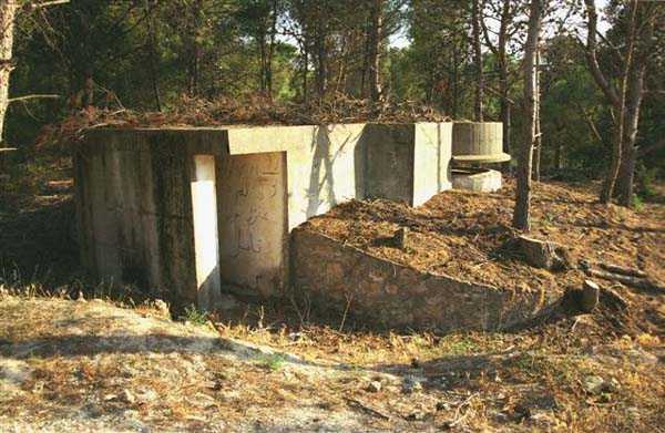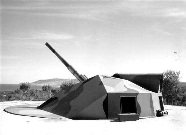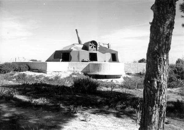 Plus a quantity of 20 mm guns and 12.7 mm machine guns. All this equipment was of course stored, the Cold War not really being war. The manpower of Bizerte's anti-aircraft defense allowed for the arming of only one 90 US M1 battery. Today, while the 105s were dismantled upon our departure, the site is still military and under high surveillance. The battery is invisible, as it is encircled by a wall placed at a good distance. We were only able to see one of the shelters for the twin 20 mm MG 151 mount, placed outside the new enclosure. Also called the R'Mel battery. JJM 14/10/07
