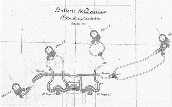 Tunis. Die Batterie Ras Dourdas liegt östlich des Golfs von Tunis auf einer durchschnittlichen Höhe von 165 Metern. Ihre Aufgabe ist die Verteidigung des Golfs, gemeinsam mit der ihr gegenüber in 15 Kilometern Entfernung liegenden Batterie Sidi Bou Saïd, mit der sie Kreuzfeuer unterhält. Ihr Vorprojekt ist auf den 20. Juli 1928 datiert, ihre Errichtung wurde am 30. Januar 1929 angeordnet. Es handelt sich um eine feste Sekundärartilleriebatterie, bewaffnet mit 4 Kanonen 138 Mle 1910 auf Lafette Mle 1919-25. Dieses Wiegegeschütz, 55 Kaliber lang, stammt von den Schlachtschiffen vom Typ Bretagne, deren Bewaffnung reduziert wurde, und Normandie, deren Bau 1914 eingestellt wurde. Das Schussfeld wurde auf 400 Strich erweitert, und die vertikale Richtamplitude liegt zwischen –10° und +40°. Eine Stahlblechmaske schützt das Geschütz und seine Bedienung. Die Reichweite beträgt 15.400 Meter mit der RC-Granate und 18.000 Meter mit der FAD-Granate. Die Treibladung ist in einer Kartusche enthalten, die das Zündsystem trägt und für den Gasdruckverschluss sorgt. Die Feuergeschwindigkeit beträgt 5 Schuss pro Minute. Die Geschütze sind auf Plattform BA Mle 26 in Gruben mit einem Durchmesser von 7,60 Metern installiert, an die gegen 305-mm-Granaten gesicherte Nischen für 160 Schuss angrenzen. Diese werden aus dem unterirdischen Magazin, das sich auf Höhe –25 befindet, über ein teilweise betoniertes Stollennetz mit 40-cm-Spurweite versorgt. Dieses Magazin, das die Munition für die Erstausstattung von 1200 Schuss enthält, ist über 2 Aufzüge und einen Belüftungsschacht mit der Oberfläche verbunden. Die beiden oberen Aufnahmehäuser dieser Aufzüge beherbergen die zwei Gruppen von 3 und 7 kW, die für die Beleuchtung und die Motoren bestimmt sind. Das PDT ist vor den Geschützen platziert. Es ist durch 6 Panzerplatten von 240 mm Dicke geschützt, die ursprünglich für das Schlachtschiff Gascogne bestimmt waren, dessen Bau 1914 unterbrochen wurde. Es ist mit einem Koordinatenumwerter C Mle 26 und einem Entfernungsmesser H Mle 34 ausgestattet, der in einem nahegelegenen Unterstand untergebracht ist. Es ist über einen Schacht mit dem darunterliegenden Gefechtsstand (PC) verbunden. Letzterer war 1940 nicht einsatzbereit. Die Batterie verfügt über einen 150-cm-Scheinwerfer GP Bréguet, der am Fuße der Klippe installiert ist. Dieser wird von einem Sagem-Feuerleitrechner unterstützt, dessen Kommandoposten sich in der Nähe des PDT befindet. Die Flugabwehr wird von 2 Maschinengewehren 8 mm Mle 1907 sichergestellt. Die Unterbringung der Besatzung erfolgt in einem festen Gebäude und mehreren Wellblechunterständen. Die Abgeschiedenheit der Stellung machte den Aufenthalt in Ras Dourdas im Gegensatz zu Sidi Bou Saïd wenig angenehm. Diese Batterie hat keine Kampfhandlungen erlebt. Sie ist aus der italienischen Besatzungszeit in gutem Zustand hervorgegangen. Es ist eine sehr gelungene Anlage, sicherlich die ausgereifteste der 138-mm-Batterien, die damals in den Berichten sogar als nachahmenswertes Beispiel angeführt wurde. Das Gelände ist sicherlich noch militärisch, aber wir kennen seinen genauen Status nicht. JJM 30/06/07