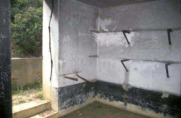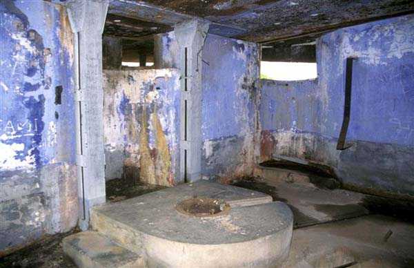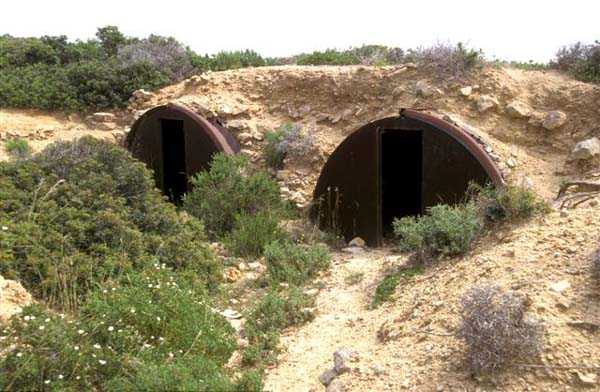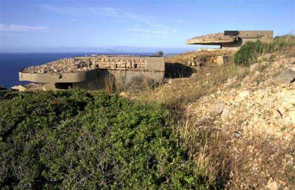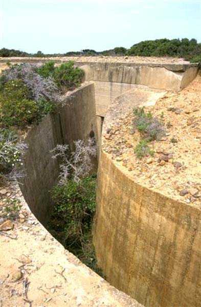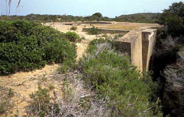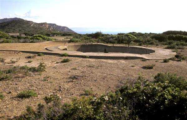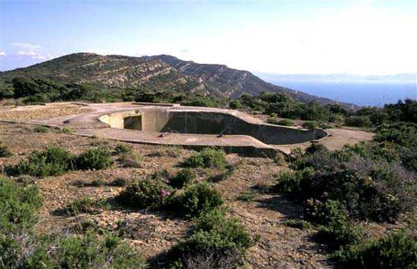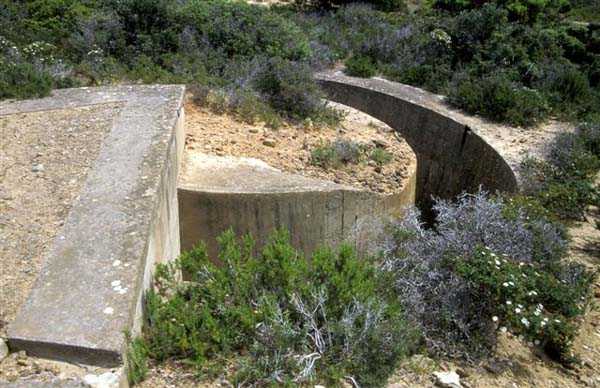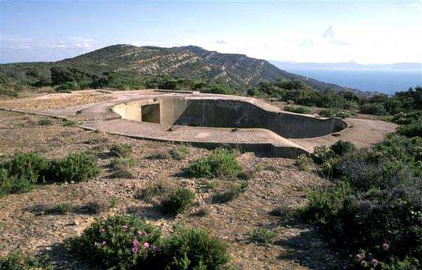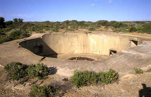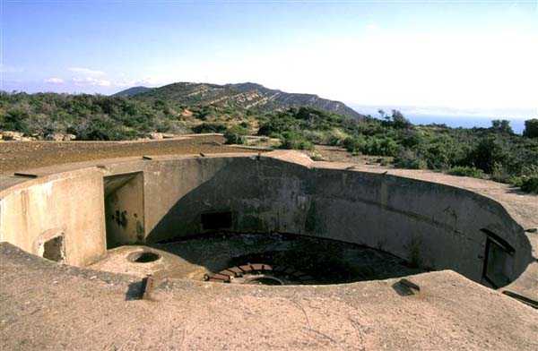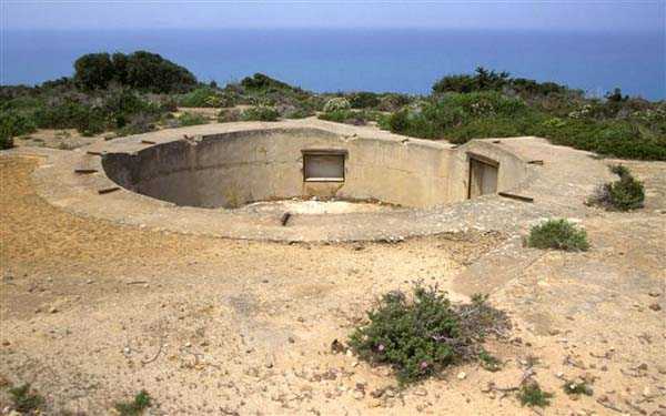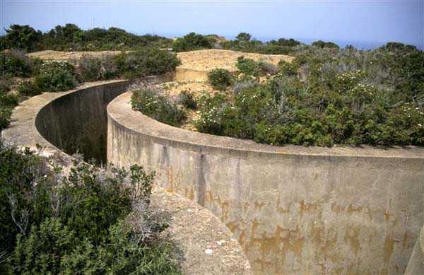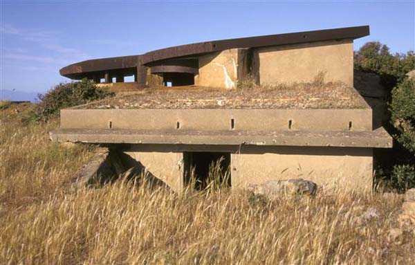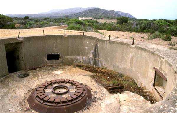 Tunis. La batterie de Ras Dourdas est située à l’Est du golfe de Tunis, à une altitude moyenne de 165 mètres. Sa mission est d’assurer la défense du golfe, de concert avec celle de Sidi bou Saïd, qui lui fait face à une distance de 15 kilomètres, et avec laquelle elle croise ses feux. Son avant-projet est daté du 20 juillet 1928, et sa construction prescrite le 30 janvier 1929. C’est une batterie d’artillerie secondaire fixe, armée de 4 canons de 138 Mle 1910, sur affût Mle 1919-25. Ce matériel à berceau, de 55 calibres, provient des cuirassés type Bretagne, dont l’armement a été allégé, et Normandie, dont la construction a été arrêtée en 1914. Le champ de tir a été porté à 400 grades, et l’amplitude du pointage vertical, de – 10° à + 40°. Un masque en tôle d’acier protège la pièce et ses servants. La portée est de 15 400 mètres avec l’obus RC et de 18 000 mètres avec l’obus FAD. La charge propulsive est contenue dans une douille, qui porte le dispositif d’amorçage et assure l’obturation. La cadence de tir est de 5 coups à la minute. Les pièces sont installées, sur plateforme BA Mle 26, dans des cuves de 7,60 mètres de diamètre, auxquelles sont accolées des niches à l’épreuve du 305, pouvant contenir 160 coups. Celles-ci sont ravitaillées depuis le magasin souterrain, situé à la cote – 25, par un réseau de voie de 40, en sape en partie bétonnée. Ce magasin, qui contient les munitions du premier armement, soit 1200 coups, est relié à la surface par 2 monte-charge et un puits d’aération. Les 2 recettes supérieures de ces monte-charge abritent les 2 groupes, de 3 et 7 kW, destinés à l’éclairage et aux moteurs. Le PDT est placé en avant des pièces. Il est protégé par 6 plaques de blindage de 240 mm, destinés à l’origine au cuirassé Gascogne, dont la construction a été interrompue en 1914. Il est doté d’un conjugateur C Mle 26 et d’un télémètre H Mle 34, installé dans un abri voisin. Il est relié par un puits au PC situé en dessous. Celui-ci n’était pas opérationnel en 1940. La batterie dispose d’un projecteur de 150 GP Bréguet, installé au pied de la falaise. Il est assisté par un télépointeur Sagem, dont le poste de commande se situe à proximité du PDT. La DCA est assurée par 2 mitrailleuses de 8 mm Mle 1907. Le casernement est assuré par un bâtiment en dur et plusieurs abris métro. L’isolement de la position rendait le séjour à Ras Dourdas peu agréable, contrairement à Sidi bou Saïd. Cette batterie n’a pas connu les combats. Elle est sortie en bon état de l’occupation italienne. C’est une très belle réalisation, certainement la plus aboutie des batteries de 138, donnée d’ailleurs comme exemple à suivre dans les comptes-rendus de l’époque. Le site est certainement encore militaire, mais nous en ignorons le statut exact. JJM 30/06/07