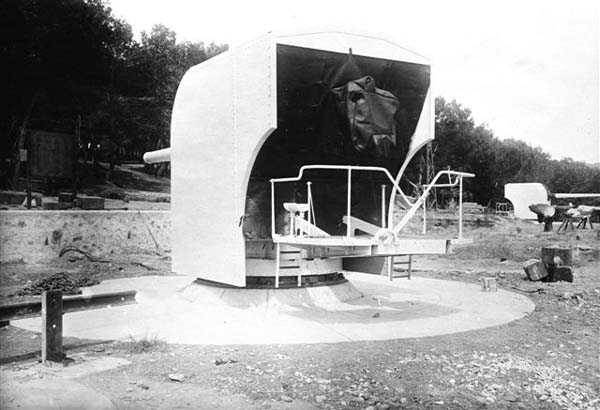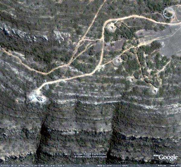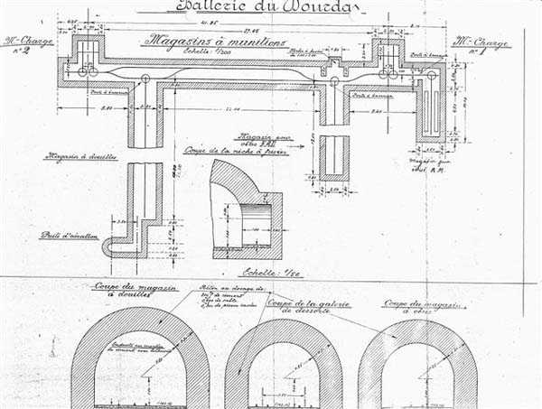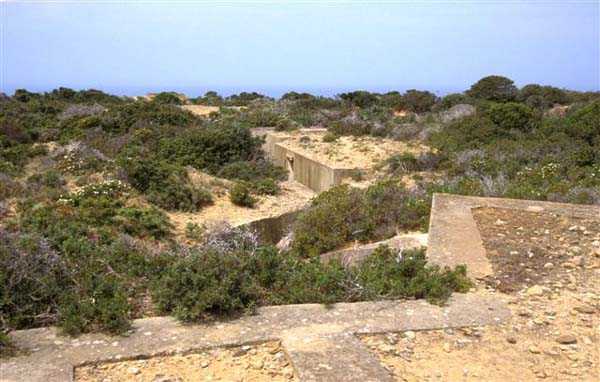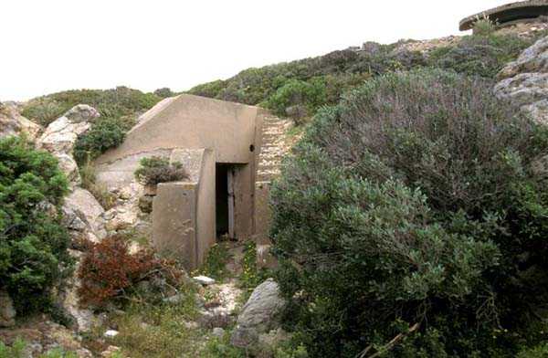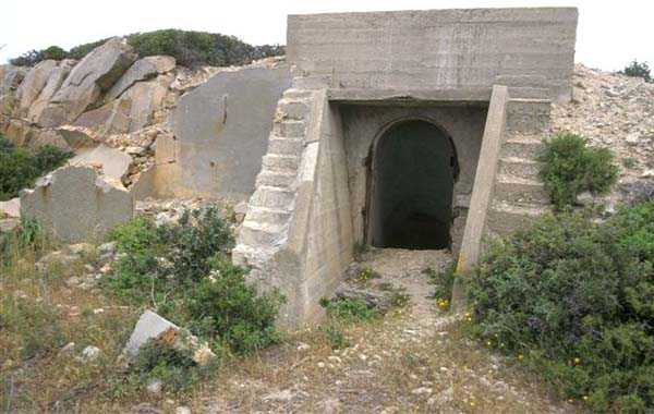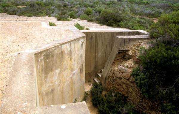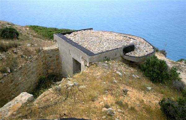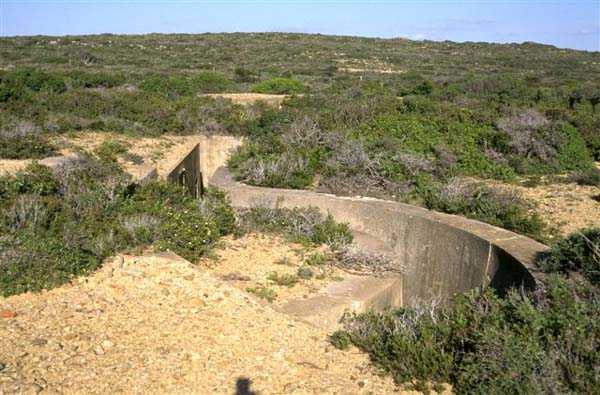Tunis. The Ras Dourdas battery is located east of the Gulf of Tunis, at an average altitude of 165 meters. Its mission is to ensure the defense of the gulf, in conjunction with that of Sidi Bou Saïd, which faces it at a distance of 15 kilometers, and with which it crosses its fire. Its preliminary design is dated July 20, 1928, and its construction was ordered on January 30, 1929. It is a fixed secondary artillery battery, armed with 4 guns 138 Mle 1910 on carriage Mle 1919-25. This cradle-mounted equipment, of 55 calibers, comes from battleships of the Bretagne type, whose armament was lightened, and Normandie, whose construction was halted in 1914. The field of fire was extended to 400 grads, and the amplitude of vertical aiming is from –10° to +40°. A steel plate mask protects the gun and its crew. The range is 15,400 meters with the AP shell and 18,000 meters with the HE shell. The propellant charge is contained in a cartridge case, which carries the primer device and ensures obturation. The rate of fire is 5 rounds per minute. The pieces are installed, on platform BA Mle 26, in pits 7.60 meters in diameter, to which splinter-proof niches capable of containing 160 rounds are attached. These are supplied from the underground magazine, located at level –25, by a network of 60 cm gauge track, partly concreted in a sap. This magazine, which contains the ammunition for the initial armament, i.e., 1200 rounds, is connected to the surface by 2 hoists and a ventilation shaft. The two upper receiving chambers of these hoists house the two groups, of 3 and 7 kW, intended for lighting and motors. The FCB is placed in front of the pieces. It is protected by 6 armor plates of 240 mm, originally intended for the battleship Gascogne, whose construction was interrupted in 1914. It is equipped with a coordinate converter C Mle 26 and a rangefinder H Mle 34, installed in a nearby shelter. It is connected by a shaft to the command post located below. The latter was not operational in 1940. The battery has a 150 cm searchlight GP Bréguet, installed at the foot of the cliff. It is assisted by a Sagem director, the command post of which is located near the FCB. Anti-aircraft defense is provided by 2 machine guns 8 mm Mle 1907. Quarters are provided by a solid building and several corrugated iron shelters. The isolation of the position made the stay at Ras Dourdas unpleasant, unlike at Sidi Bou Saïd. This battery did not see combat. It emerged in good condition from the Italian occupation. It is a very fine achievement, certainly the most accomplished of the 138 batteries, even cited as an example to follow in the reports of the time. The site is certainly still military, but we do not know its exact status. JJM 30/06/07