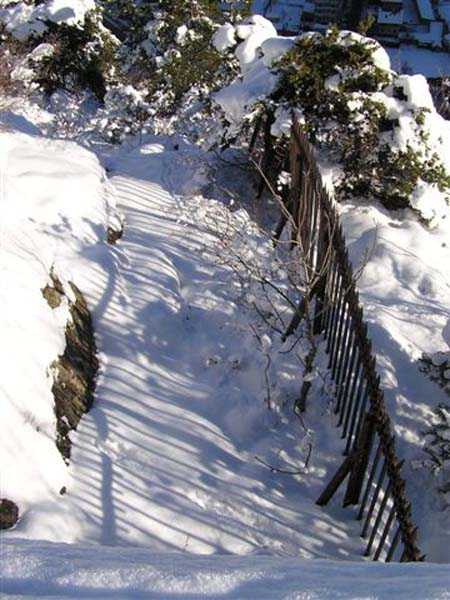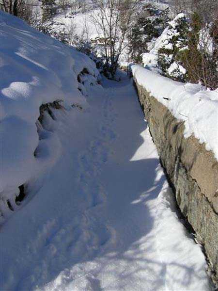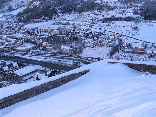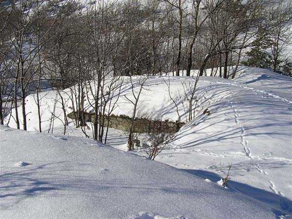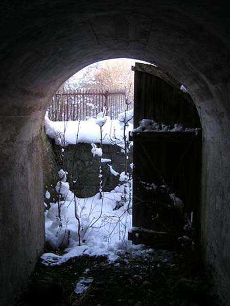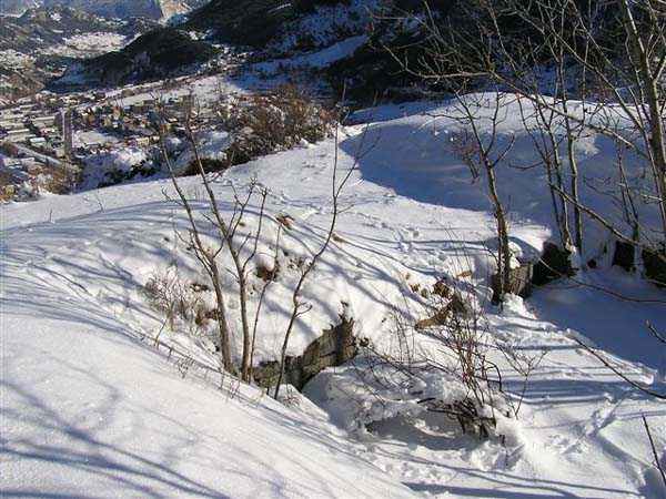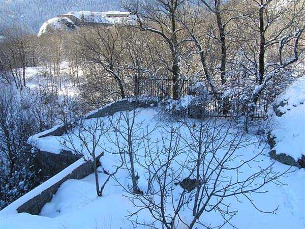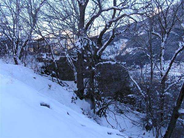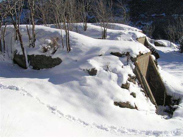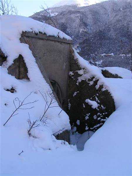 Fortress of Modane, southwest of the town, 1884-1892. 1,203 m/alt. Small artillery work, with a closed perimeter, complementary to the fort of the same name. It occupies the eastern end of the Replaton plateau from which it took its name. Dominating Modane by 150 m, it takes the shape of a horseshoe whose head faces the Haute Maurienne. Its tortuous perimeter follows the relief. The escarp surmounted by a breastwork wall forms the curve of the horseshoe; a remarkable defensive grill, pierced by an entrance, closes the perimeter on the gorge front, which front is under the views of the neighbouring fort. Close defence relies only on a patrol walkway approaching the six salients one after the other. Only the last one consists of a small bastion. The redoubt has three staggered platforms, to which correspond as many enveloped traverses-shelters. The platforms, whose flanks are masonry, are designed to each receive a 95 mm piece. As for the traverses, devoid of arms, although it is difficult to be certain, it seems that the body of the shelter is of special concrete and the wings of the embedment are of masonry. In any case, one element leaves no doubt about its post-high-explosive shell origin: the powder magazine. This is dug into the rock at the level of the northern platform. The access gallery has not been lined. The angles of its chicane still have their tile panels intended to reflect daylight. The storage room is of masonry made of baked bricks, coated with cement on its exteriors and connected by buttresses to the in-situ rock. This storage room has approximate dimensions of 4 x 3 m. An extremely rare thing in rock magazines: care was taken to provide a lamp embrasure in the thin back wall, an embrasure widened by the presence of a console in the shape of an inverted stepped pyramid. The presence, near the entrance, of a small cistern (± 10 m³) dug into the ground should be noted. A metal beam crossing this cistern along its length testifies to the existence of a now disappeared cover. In 1913, the construction of a reinforced concrete casemate in the neighbouring fort, taking over the firing axis and armament of the redoubt, allows us to assume, with all reservations, that the latter was henceforth abandoned due to its vulnerability. Indeed, it is situated lower than all possible positions of the opposing artillery. In the interwar period, the work is developed as a strongpoint: we can observe there some firing emplacements made of dry stones, logs and metro sheet metal as well as elements of trenches in front of the platforms. Finally, note that the work went through the various conflicts without coming under fire, hence its good state of preservation (12/2007). Free access.