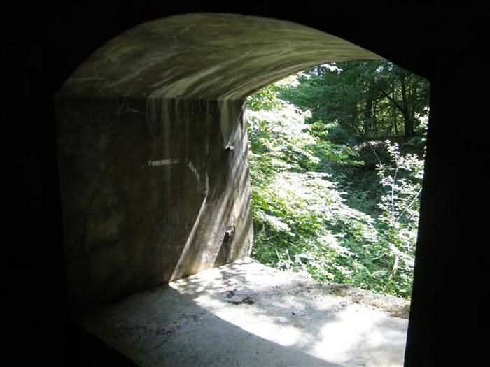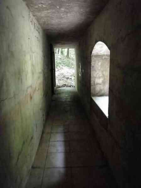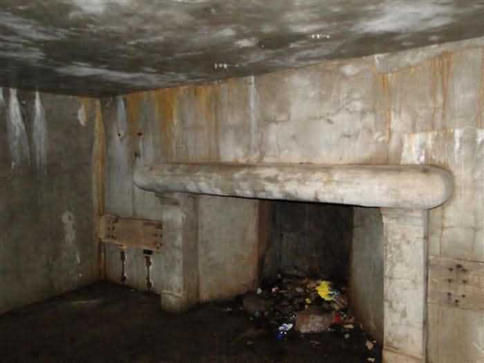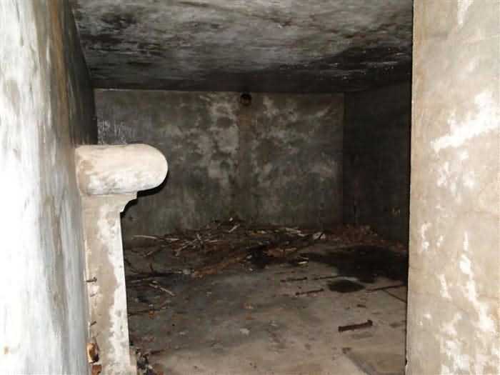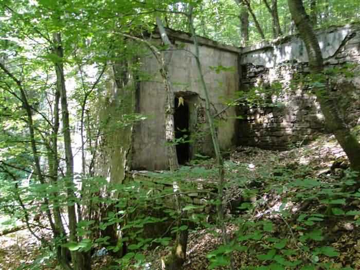 Fortress Belfort, northeast of the square, 1906. 450 m alt. Located less than 500 m southeast of salient IV of the Fort de Roppe, this shelter for ½ company is the only two-level combat shelter still visible today, the one "South of Denney" having been razed. Well protected in the hollow of a depression in the ground, it is completely different from the other concrete combat shelters mentioned in the note of September 20, 1898. It has four rooms for the troops, each with its own hearth, on two unconnected levels. Access to the upper floor is from the right while that of the ground floor opens in the center of the facade. A window overlooks the ground floor entrance on the first floor. The upper floor also includes a Turkish toilet. Although abandoned (06/2010), this shelter is in very good condition and untagged. You can still see bench backs hanging on the walls, as well as a cage-wall bracket. It is freely accessible, but located in the middle of the woods, without even being on the path of a path.