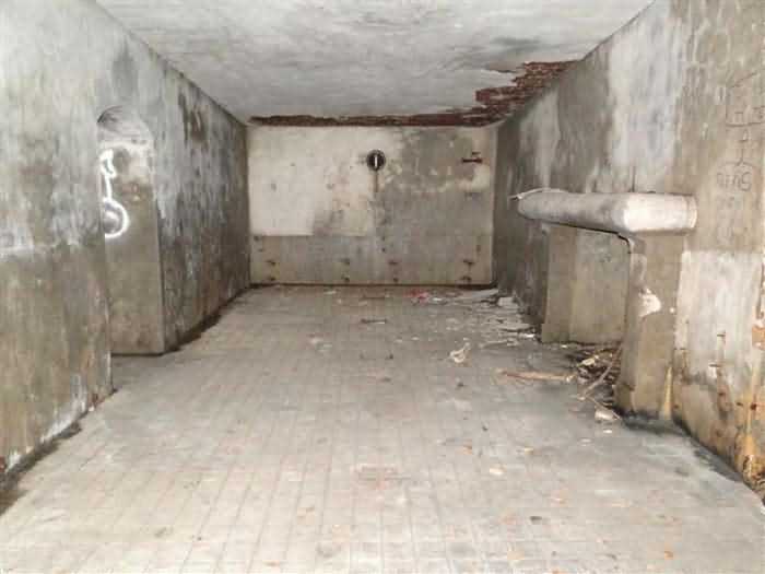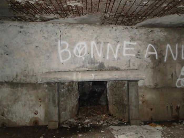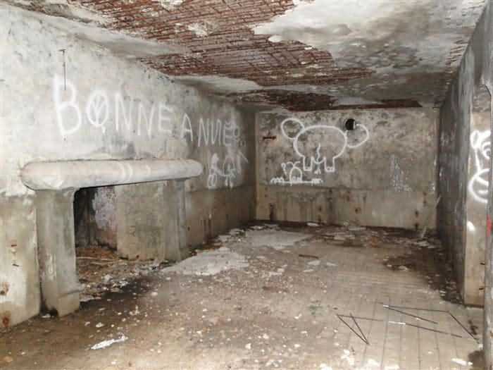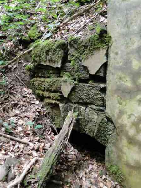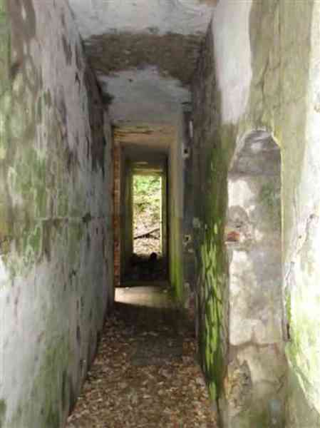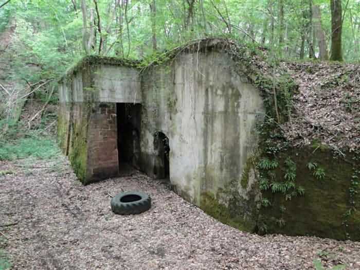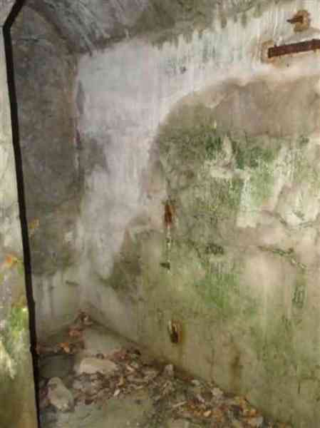 Belfort fortified camp, northeast of the square, 1906. ± 430 m alt. Built to the right of the military road leading up to the fort of Roppe alongside numerous batteries and entrenchments, this combat shelter was designed for a half-company. To this end, it is composed of two barracks, each of which has a large hearth, typical of Belfort combat shelters. The jambs of its facade feature beautiful masonry of pink Vosges sandstone topped with the inevitable concrete ceiling slab. The latrines are located in the right wing and consist of two squat toilets, arranged opposite each other. To the left of the barracks, a 2 x 2 m room was to be provided to serve as a kitchen. Right next to the shelter, on the left, despite the flow of the earth, we can still make out a niche in the dry stone wall. Its precise role remains to be defined. In the facade corridor, to the right of the barracks, is the inspection chamber for the cistern, which seems (we were unable to go down there) to be located under this corridor. The shelter and its barracks have been stripped of all their metal elements, but the whole remains in fairly good condition and little tagged. Very well protected from external blows, it is housed in a hollow specially made to receive it and is freely accessible (06/2010).