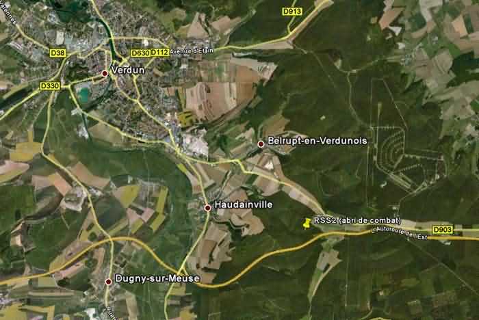 Opevněný tábor Verdun, jihovýchodně od města (rozsah Rozellier- Saint-Symphorien 2), 1900-1901. 360 m n. m. Nachází se 200 metrů severovýchodně od stavby Saint-Symphorien a jedná se o kryt pro rotu. S největší pravděpodobností byl postaven ve stejnou dobu jako sousední SSH-1, kterému je ve všech ohledech podobný. Ve vynikající práci Barrose, Bergera a Brolliho o bojových krytech (viz bibliografie), strana 66, se můžeme dočíst: V krytech RSS-2 a SSH-1 je cisterna zakopána na boku krytu, u východu z chodby naproti latrínám. Její ochrana proti granátům je proto poměrně slabá. Nenašli jsme žádný dokument, který by nám umožnil zjistit, zda tyto cisterny pocházejí z doby výstavby krytů, nebo byly přidány později (…). Ve skutečnosti se venku, vlevo a proti krytu, nachází betonový výklenek, téměř krychlový, asi 100 cm na každé straně, pod kterým je vidět prohlubeň. Je to skutečně cisterna? Nepopiratelným faktem je, že uvnitř krytu žádná není. Mezi lety 1909 a 1911 byla v prohlubni naproti latrínám instalovaným v pravé křídelní stěně zabetonována malá kuchyňka. Kromě motýlího poklopu v kuchyni a podpěrných konzol pro komíny v téže kuchyni byl tento kryt kompletně očištěn od kovových prvků. Kromě toho jsou jeho stěny suché a bez graffiti (05/2011). Na jak dlouho? Všimněte si, že na vrcholu přístřešku je kovový komín dlouhý více než dva metry, opřený o rozvětvení keřů a obtížně datovatelný. Otevřený všem větrům.