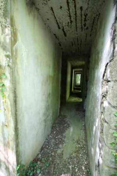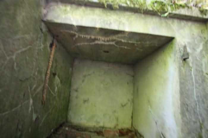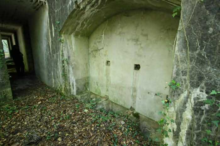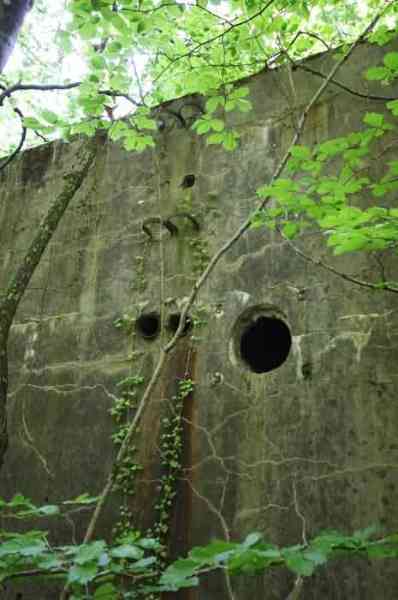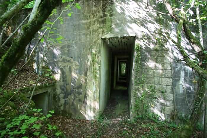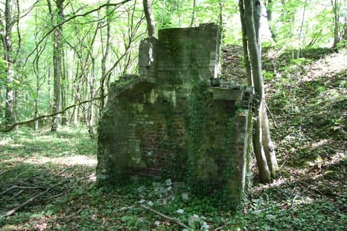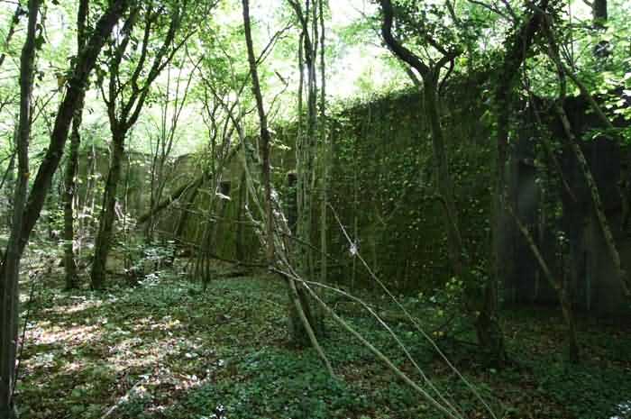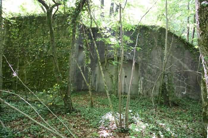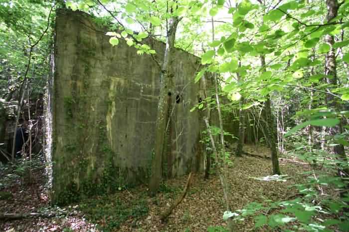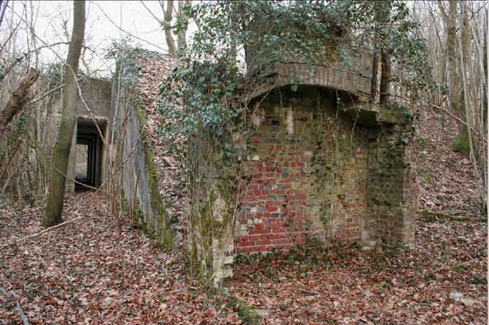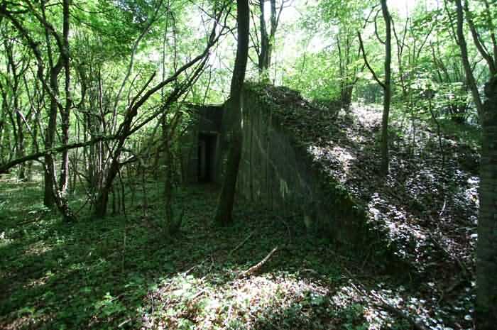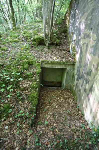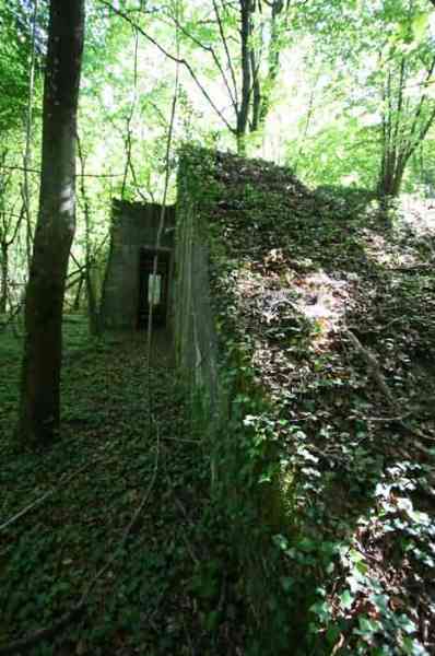 Verdun fortified camp, southeast of the city (range Rozellier- Saint-Symphorien 2), 1900-1901. 360 m alt. Located 200 meters northeast of the Saint-Symphorien structure, this is a shelter for a company. It was most likely built at the same time as its neighbor SSH-1, to which it is similar in all respects. In the excellent work by Barros, Berger and Brolli on combat shelters (see Bibliography), page 66, we can read: In shelters RSS-2 and SSH-1, the cistern is buried on the side of the shelter, at the exit of the corridor opposite the latrines. Its protection against shells is therefore quite weak. We have not found any document allowing us to know if these cisterns date from the construction of the shelters or were added later (…). In fact, outside, on the left and against the shelter, there is a concrete niche, almost cubic, about 100 cm on each side, under which a hollow can be seen. Is this indeed a cistern? The undeniable fact is that there is none inside the shelter. Between 1909 and 1911, a small kitchen was concreted in a protrusion opposite the latrines installed in the right wing wall. Apart from a butterfly hatch in the kitchen and the support brackets for the chimneys in the same kitchen, this shelter was completely cleaned of its metal elements. Apart from that, its walls are dry and free of graffiti (05/2011). For how long? Note, on the top of the shelter, a metal chimney more than two meters long, leaning in a fork of shrubs and difficult to date. Open to all winds.