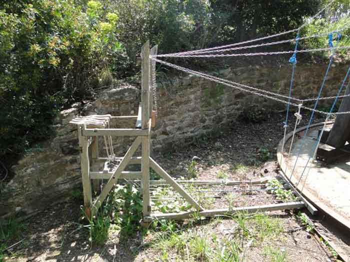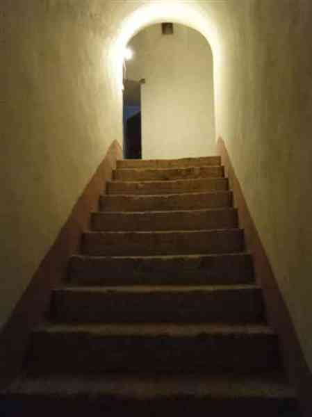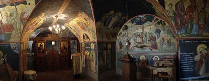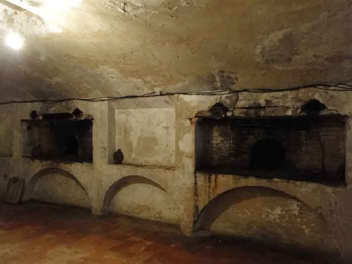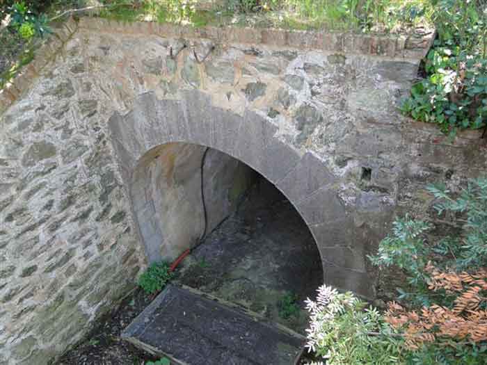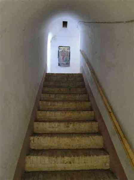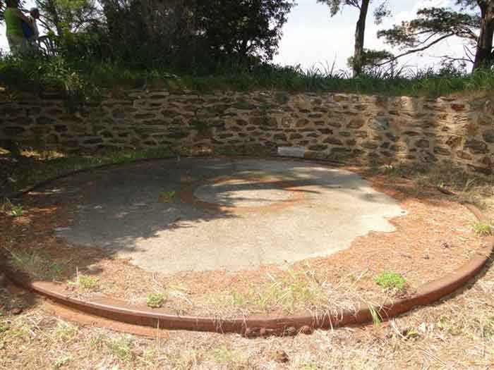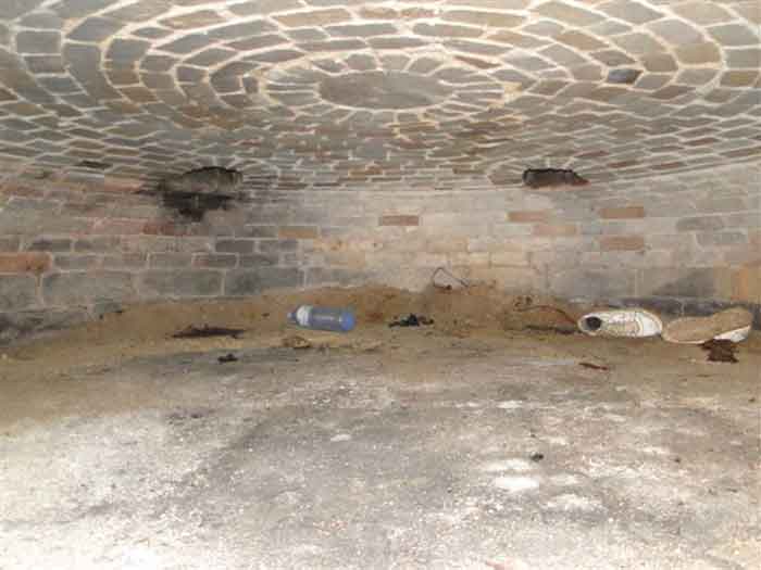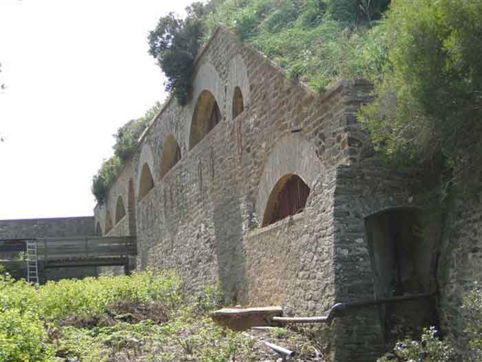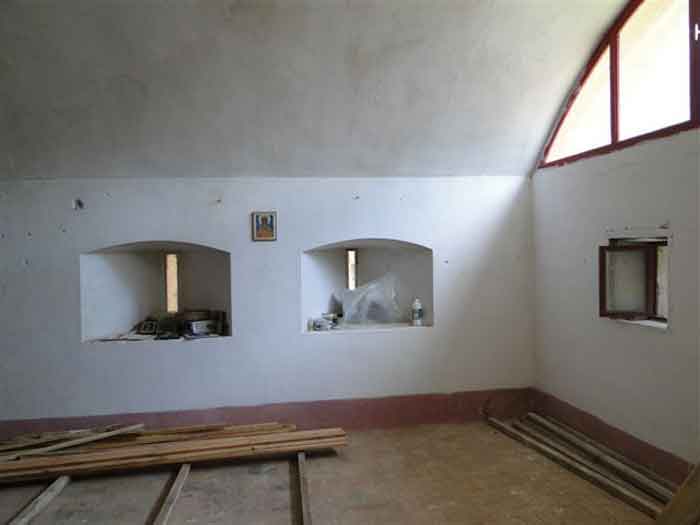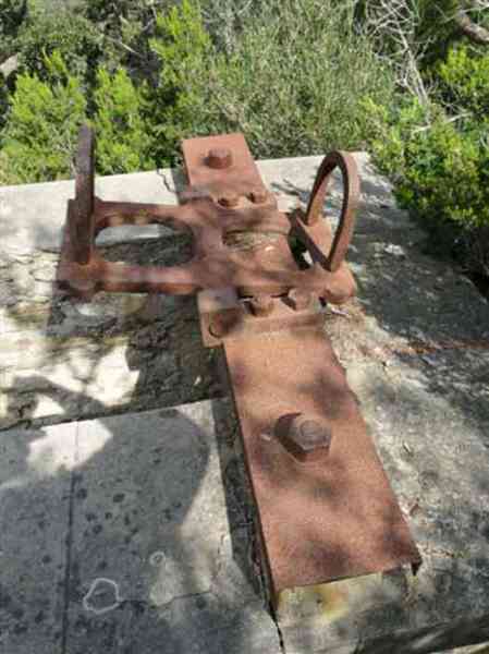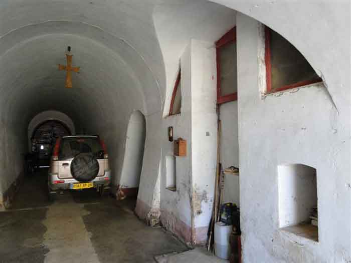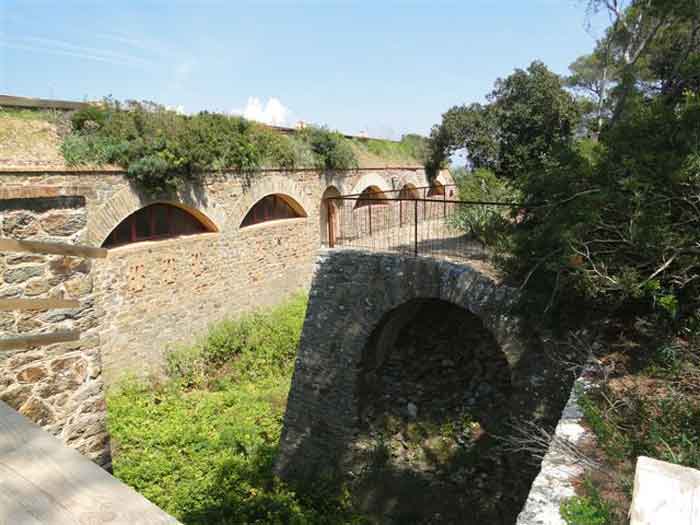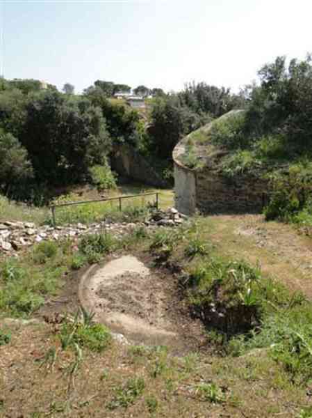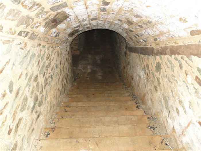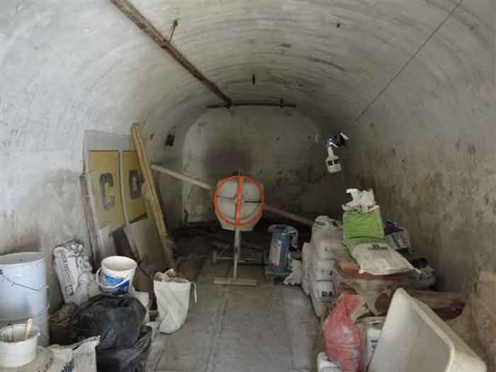 Fortress of Toulon, Hyères islands, north-northeast of the island of Porquerolles, 1882-1884. 114 m/alt. When the progress of artillery had made the island's defenses obsolete, both in terms of their efficiency and their number, it was decided to concentrate the protection of the island and its approaches in a single site. A notice from the Coastal Defense Commission, dated June 23, 1881 and approved on August 24 following, indicates a desire to establish "on the buttress of that name", a work armed with 9 19 cm guns. It is therefore probably not appropriate to claim that it was built by prisoners as... repentance. It seems that the intention to build a fort on this height was contemporary with the commission chaired by Séré de Rivières, from 1874. A survey of the land was carried out in 1880, but it would take until 1882 to begin work and 1884 for their completion. The geography of the place made the establishment of a work sufficiently vast for the envisaged armament difficult. In the end, two works were chosen which were initially designated center battery and north battery. The first was to become the fort and the second is treated in a separate article; see: Repentance (auxiliary batteries of the fort). Unlike the fort of Éminence on Port-Cros, the terrain here was free of any prior construction. Even if its perimeter is quite tormented due to the limits imposed by the relief, the fort overall assumes a rectangular, almost square shape. It is surrounded by a dry ditch whose defense was ensured from the parapet wall of the semi-detached scarp as well as by a single, double caponier, placed to the left of the entrance, on a ridge of the terrain imposing an impressive plunge on the western branch of the gorge ditch. The counterscarp is, at the level of this caponier, in relieving arches. Three large quarters adjoin the entrance on either side. The latter each have three rifle embrasures aimed at the glacis of the gorge and surmounted by a lighting window. In the circulation corridor, we find as many light wells as there are quarters, but these wells open in the top of the barrel vault rather than in the thickness of the wall, and are flared in their lower part. The entrance to the fort, in a tunnel, no longer allows one to ascertain the type of drawbridge that equipped it. Singularly, in its intermediate section, this entrance tunnel assumes the shape of a horseshoe, a shape that we will find again in the access corridor to the gorge caponier. The latter is particular for more than one reason. Indeed, under penalty of having too large a dead angle, the slope of the terrain imposed advancing the rifle embrasures sweeping saliant I, which could only be done by providing a machicolation in the western flank. It is, to our knowledge, a unique case and what is equally unique is that during the first decade of the 21st century, the occupant of the place, Father Séraphin, an Orthodox anchorite monk, transformed the place into a chapel. One must see it to believe it and, by describing it here, I unfortunately deprive the reader of the surprise that was mine when discovering this splendor, without having expected it in the least. In the purest Orthodox style, all in flourishes and polychromy, occasionally helped by some young religious come on retreat to the fort, Father Séraphin created a true splendor which, we do not nourish the slightest doubt in this regard, will one day be registered as major heritage of the island. From the wall frescoes to the finely carved furniture, everything was done by hand. Its discovery and both the presence and the explanations of the author-initiator of this metamorphosis will remain for me one of the greatest moments of the adventure that the IFF represents. Opposite the barracks, at a lower level, are found, side by side, two bread ovens whose capacity we estimate at about 300 even 350 rations each. Alas, the metallic parts have disappeared but they were of quite simple conception. The garrison of the fort was however only 194 men. Perhaps one should see in this overcapacity the trace of the initial will to create here an authentic reduit endowed with a garrison of 900 men? On the opposite wall, remain the traces of a water pump. The tunnel of the entrance emerges practically facing an enormous hollow traverse sheltering the head of the hoist of the rock magazine that would be dug in 1893. Inside the latter, one can notice two low lateral abutments near the entrance, but these without opening to the exterior, be it a simple barbican. One cannot therefore assimilate it to the Model 1879. On the ground, the locations of the rails of a double track of 40 cm for the supply of the firing platforms with ammunition are always visible. This traverse is situated at the center of the head front, oriented to the north-northwest. It separates two pairs of firing platforms for as many G guns 24 cm Model 1876 on P.C. mount. On one of them, a carillon of five bells with a keyboard at the very least artisanal and original was mounted. Behind the leftmost firing platform, we find three entrances to underground passages. One returns towards the gorge and, descending, gives access to the initial powder magazine, with a capacity of 76 tons and adjoining the left of the barracks, one level lower however. Another gives access to the parapet wall of the west front, and the third to the rock magazine. The latter, clean but scrapped with the exception of some very rusted elements of the hoist, comprises the usual loading workshop and a storage room for powders. We also note two large niches devoid of traces of hinges, which would lead us to think that wooden and zinc cabinets were pushed there for the storage of artifices. Nevertheless, the fact of finding one of the two on the intermediate landing of the access staircase does not plead for this option. We will note the usual (for coastal batteries) gutter collecting condensation water and cut in the rock, as well as a sort of