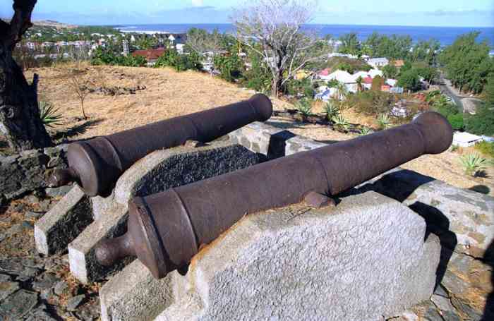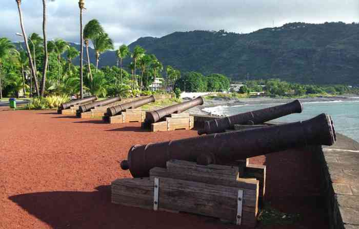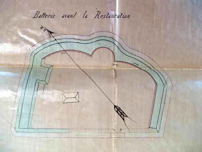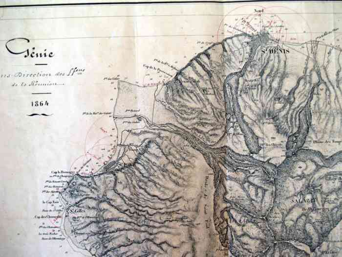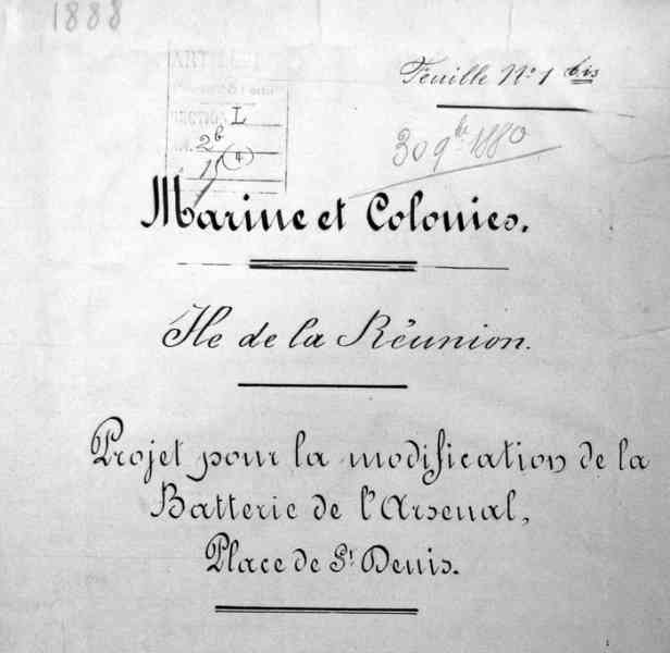 The island of Réunion, originally called Île Bourbon, has been French since 1638. Defences have certainly been installed there, and for a very long time. In Saint-Leu, the two guns of the Sans-Culotte battery, cast in Ruelle in the year 3 (1794), still bear witness to this today. As do those of the Quatre canons redoubt, displayed above Saint-Denis, in the first bends of the RD 41. In 1859, the coastal defence commission develops a programme for the construction and modernisation of batteries. In 1866, it is planned to install 60 guns and 17 mortars, distributed across 14 batteries, for an estimated cost of 750,000 francs. This programme is modified in 1868 and 1869 and, in 1872, the situation of the coast batteries, described as provisional, is as follows for Saint-Denis: