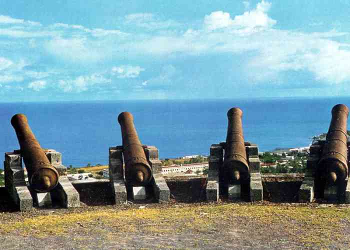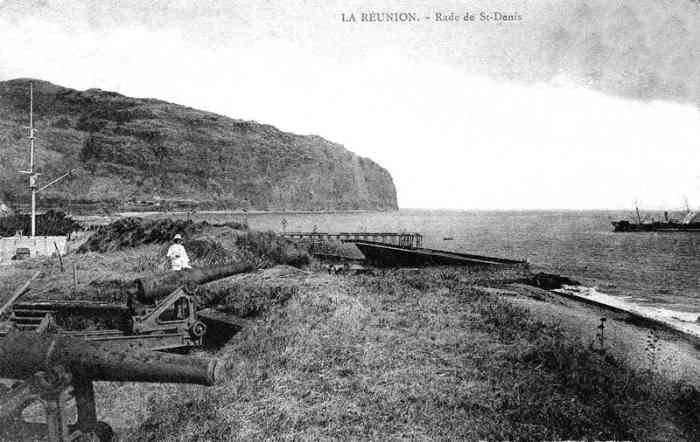 L’île de la Réunion, primitivement appelée île Bourbon, est française depuis 1638. On n’a pas manqué d’y installer des défenses, et depuis fort longtemps. À Saint-Leu, les deux canons de la batterie des Sans-Culotte, fondus à Ruelle en l’an 3ème, soit en 1794, en témoignent encore de nos jours. Au même titre que ceux de la redoute des Quatre canons, exposés au-dessus de Saint-Denis, dans les premiers lacets de la RD 41. En 1859, la commission de défense des côtes élabore un programme de réalisation et de modernisation des batteries. En 1866, on prévoit d’installer 60 canons et 17 mortiers, répartis dans 14 batteries, pour un montant estimé de 750 000 francs. Ce programme est modifié en 1868 et 1869 et, en 1872, la situation des batteries de côte, qualifiée de provisoire, est la suivante, pour Saint-Denis :