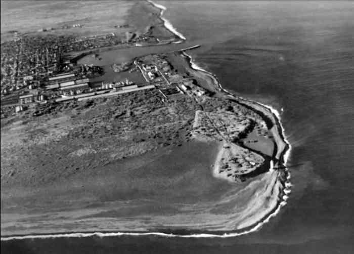 Voor de nieuwe haven in aanbouw, aan de Pointe des Galets: