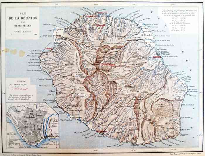 Het eiland Réunion, oorspronkelijk Île Bourbon genaamd, is sinds 1638 Frans. Men heeft niet nagelaten er verdedigingswerken te installeren, en dat al sinds zeer lang. In Saint-Leu getuigen de twee kanonnen van de batterij Sans-Culotte, gegoten in Ruelle in het jaar 3 (1794), daar nog steeds van. Net als die van de redoute Quatre canons, tentoongesteld boven Saint-Denis, in de eerste haarspeldbochten van de RD 41. In 1859 ontwikkelt de kustverdedigingscommissie een programma voor de realisatie en modernisering van de batterijen. In 1866 is het de bedoeling 60 kanonnen en 17 mortieren te installeren, verdeeld over 14 batterijen, voor een geschat bedrag van 750 000 frank. Dit programma wordt gewijzigd in 1868 en 1869 en in 1872 is de situatie van de kustbatterijen, als voorlopig gekwalificeerd, voor Saint-Denis als volgt: