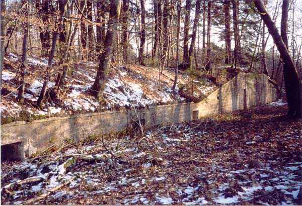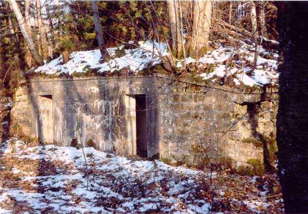 Entrenched camp of Épinal, East of the city, 1889. Small battery located a short distance behind the fort of Razimont and coded M 6. 4 concrete shelters placed in a line, two for personnel, with a single room equipped with benches for seating and 2 shelters with two rooms for ammunition. These shelters are separated by firing platforms. Abandoned. Also noteworthy, not far from there, is the M4 battery, made of concrete, for 4 pieces, built in 1905-1906.