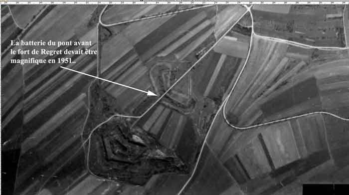 Befestigtes Lager Verdun, südwestlich der Stadt, 1875–1877. 318 m ü. M. Benannt nach Fort Muller. Dies ist eines der Forts von Verdun, deren Bau aufgrund der neuen Spannungen mit Preußen überstürzt wurde und die den Namen „Panikforts“ erhielten. Es handelt sich um ein Fünfeck mit einer eingezogenen Rille und einem recht klassischen Grundriss mit einem Ravelin vor dem Eingang und Kaponnieren zur Verteidigung der Gräben (zwei einfache an den geraden Frontvorsprüngen und eine doppelte am Frontvorsprung III). Die Kasernen nahmen die Mitte des Forts ein und erstreckten sich über sieben Joche auf zwei Ebenen, davor waren Magazine angeordnet, diese jedoch auf einer Ebene. Die Joche der Kasematten sind durch Ziegelmauerwerk hervorgehoben und die Oberlichter, die in den hinteren Verkehrskorridor führen, sind besonders lang. Das Pulvermagazin war bei Frontbogen I völlig außermittig. Jede der beiden vorderen Fronten umfasste zwei Schutztraversen, und die Rückseite von Frontbogen III bestand aus einer Infanteriehaube, ebenso wie die anderen Frontbogen mit ungeraden Nummern. Das Fort sollte zwischen 1905 und 1908 umfassend umgebaut werden. Die Kurtine sollte verschwinden und mit ihr der Eingang zum Fort. Der neue Eingang befindet sich jetzt entweder vor oder in der ehemaligen linken Kurtine. Darunter befindet sich eine Klappbrücke mit einem seitlichen Hebemechanismus. Sie wurde von der Firma der Gebrüder Douge in Besançon hergestellt. In Richtung Frontbogen I grenzt an den Eingang eine brandneue Kriegskaserne mit sechs Jochen, von denen vier als Truppenkasernen dienten. Diesen Kasernen geht ein Verkehrskorridor voraus, dessen Zinnen die Schlucht überblicken. In einem ihrer Keller wurden während der Bauarbeiten vor Ort Metalltanks genietet, wodurch das Pulvermagazin vollständig verschwand. Rechts vom Eingang nimmt heute eine imposante Doppelkaponniere den einspringenden Winkel der Schlucht ein. Die vier Zinnen (darunter zwei für Kanonen und ohne den Suchscheinwerfer) gegenüber von Frontbogen I sind auf unterschiedlichen Höhen angebracht. Rechts von dieser Kaponniere nimmt eine Reihe von vier Räumen den rechten Teil der alten Kurtine ein. Sie dehnen sich daher aus, wenn sie von der Kaponniere weg verschoben werden. Die alte Kaserne und die ihr gegenüberliegenden Magazine sind erhalten geblieben. Der Brotofen hingegen wurde zerstört. Von dieser Kaserne sind zahlreiche Türrahmen erhalten geblieben, nicht jedoch die Treppen. Es wurde eine Panzerung installiert, nämlich zwei Maschinengewehrtürme (Frontbogen II und IV) und zwei 75 Mle 05-Türme (Frontbogen I und III). An jedem der Türme wird ein gepanzertes Observatorium angebracht. Um das System zu vervollständigen, wird eine Bourges-Kasematte die rechte Flanke des Forts einnehmen, mit einem Observatoriums-Wachhäuschen rechts davon. Die Kaponnieren werden durch Kontereskarpenkassetten ersetzt. Alle diese Orgeln werden durch unterirdische Betongalerien verbunden. Um jedoch von einem der geraden Vorsprünge zum vorderen zu gelangen, musste man entweder durch die Schlucht oder die Galerie, die den neuen Eingang verlängert, zurückkehren oder das Risiko eingehen, ins Freie zu gehen. Diese letzte Galerie hatte eine einzigartig klaffende Öffnung, die auf die linke Seite des alten Innenhofs hinausging. Während es völlig klar war, dass eine Öffnung umso weniger verwundbar ist, je kleiner sie ist, und dass eine Schikane mit einer Verteidigungszinne ihren Schutz erhöht, haben wir hier Zugang zu dem verstärkten Netzwerk, das fünf Meter hoch und über zwei Meter breit ist. Der Kontrast zwischen den beiden Artillerietürmen ist ziemlich überraschend; während der auf Vorsprung I rostig ist, hat der andere seinen Originallack behalten und sogar perfekt gefettete Zahnräder. Die Kanonen wurden jedoch aus den beiden Türmen entfernt. Die beiden Feuerkammern der Bourges-Kasematte sind über fünfstufige Treppen zugänglich, und die Nische, durch die die Munition (noch mit Verschluss) nach oben gebracht wurde, befindet sich daher unterhalb des linken Feuerstands. Das Observatorium liegt höher als üblich, und der Zugang dorthin war nur über eine an der Wand befestigte Leiter möglich. Ungewöhnlicherweise ist der Klappsitz noch vorhanden. Unweit dieser Kasematte mündet ein Trinkwasserbrunnen in den Boden, der der Wandinschrift zufolge 40 Meter tief ist. Die Zinnen der einfachen Truhen sind außen stark vergrößert. Bei unserem Besuch im Februar 2000 waren alle Truhen ohne Inschriften. Das Fort enthält jedoch zahlreiche Wandinschriften, die jedoch original sind. Schließlich befindet sich im einzigen Gewölbe des Vorspringens IV, im Boden, gegenüber der Schießscharte auf der Kontereskarpe, ein gemauerter Bogen, der offenbar zur Aufnahme einer Kanonenspitze bestimmt ist. Ein vergleichbares Beispiel haben wir nirgendwo sonst gefunden. Direkt an den Flanken des Forts befindet sich jeweils eine Annexbatterie mit drei Traversen, einer massiven links und zwei hohlen rechts. Weiter hinten, überspannt von der Brücke der Fortzufahrt, liegen die Munitionsnischen der Batterien 3-1 und 3-2 (aus dem Jahr 1890, hier nummeriert nach der Bezeichnung von 1912) und noch weiter hinten die Batterie der Folie. Vor der linken Nebenbatterie befindet sich der Gefechtsunterstand LR-2 (Landrecourt-Regret 2) für eine halbe Kompanie und rechts von der Batterie 3-2 die RS-1 (Regret-Sartelles 1 – 1906) für eine Kompanie, die die Besonderheit aufweist, dass sich an ihrer rechten Flügelmauer eine Treppe befindet, was darauf hindeutet, dass ihr oberer Teil wahrscheinlich als Infanteriebrüstung organisiert war. Das Netz aus 17 Galerien ist insgesamt 720 m lang, versorgt jedoch keine Pamart-Glocke. Im Februar 2000 wurde dies alles aufgegeben. Im Juni 2008 begann die Armee, alles zuzumauern, und wir wetten, dass das Fort von Regret bald an der Reihe sein wird, falls dies nicht bereits geschehen ist. Siehe auch das verschanzte Lager von Verdun.