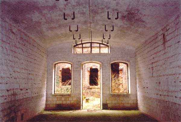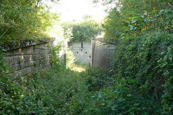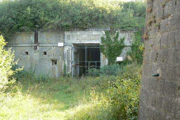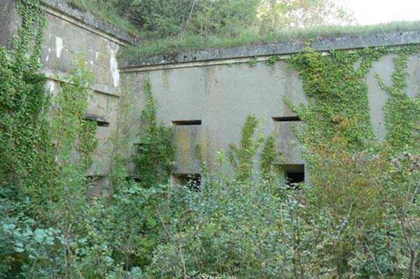Verdun fortified camp, southwest of the city, 1875-1877. 318 m/alt. Named Fort Muller. This is one of the Verdun forts whose construction was rushed due to the new tensions with Prussia, and which were given the name "panic forts". A pentagon with a retracting groove, its layout was fairly classic with a ravelin preceding the entrance and caponiers for the defense of the ditches (two single ones at the even salients and one double one at salient III). The barracks occupied the center of the fort, aligning seven bays on two levels in front of which were arranged magazines, but these on a single level. The bays of the casemates are highlighted by brick masonry and the skylights leading into the rear circulation corridor are particularly long. The powder magazine was completely off-center at salient I. Each of the two leading fronts included two shelter traverses, and the rear of salient III consisted of an infantry cowl, as did the other odd-numbered salients. The fort was to be extensively rebuilt between 1905 and 1908. The curtain wall was to disappear, and the entrance to the fort with it. The new entrance is now located either in front of or in what was the left curtain wall. It has a bascule bridge underneath with a side-raising mechanism. It was manufactured by the Douge brothers' company in Besançon. Toward salient I, the entrance is adjoined by a brand new war barracks with six bays, four of which were barracks for troops. These barracks are preceded by a traffic corridor whose battlements overlook the gorge. In one of its basements, metal tanks were riveted on site during the construction, which saw the complete disappearance of the powder magazine. To the right of the entrance, an imposing double caponier now occupies the re-entrant angle of the gorge. The four battlements (including two for cannon and excluding the searchlight) facing salient I are placed at different heights. To the right of this caponier, a line of four rooms occupies the right part of the old curtain wall. They therefore expand as they are moved away from the caponier. The old barracks and the magazines facing it have been preserved. The bread oven, on the other hand, was vandalized. This barracks has retained a good number of door frames but not its staircases. Armor was installed, namely two machine gun turrets (salients II and IV) and two 75 Mle 05 turrets (salients I and III). An armored observatory will be attached to each of the turrets. To complete the system, a Bourges casemate will occupy the right flank of the fort with an observatory sentry box to its right. The caponiers will be replaced by counterscarp coffers. All these organs will be connected by underground concrete galleries. However, to get from one of the even salients to the leading one, it was necessary to either go back through the gorge or the gallery extending the new entrance, or else it was necessary to risk going into the open air. This last gallery had a singularly gaping opening overlooking the left of the old central courtyard. While it was perfectly understood that the smaller an opening, the less vulnerable it is, that a chicane with a defensive crenel increases its protection, here, we have access to the reinforced network which measures five meters in height and a width of more than two meters. The contrast between the two artillery turrets is quite surprising; While the one on salient I is rusty, the other has retained its original paint and even perfectly greased gears. The cannons, however, were removed from the two turrets. The two firing chambers of the Bourges casemate are accessible by five-step staircases, and the niche through which the ammunition was brought up (still fitted with its shutter) is therefore located below the left firing point. The observatory is perched higher than usual, and access to it was necessary to use a ladder fixed to the wall. Unusually, the folding seat is still in place. Not far behind this casemate, a drinking water well opens into the ground, which, according to the wall inscription, is 40 meters deep. The crenellations of the simple chests are greatly enlarged on the outside. All the chests were, during our visit in February 2000, devoid of tags. The fort, however, contains many wall inscriptions, but they are original. Finally, in the only vault of salient IV, on the ground, facing the embrasure on the counterscarp side, a masonry arch seems intended to receive the spade of a cannon. We have not encountered any other similar example elsewhere. Right against each of the flanks of the fort, there is an annex battery with three traverses, one solid on the left and two hollow traverses on the right. Further back, with the bridge of the access road to the fort spanning their alignment, we find the ammunition niches of batteries 3-1 and 3-2 (dating from 1890 and numbered here according to the 1912 designation) and, even further, the battery of the Folie. In front of the left annex battery is the LR-2 combat shelter (Landrecourt-Regret 2) for a half company and, to the right of the 3-2 battery is the RS-1 (Regret-Sartelles 1 - 1906) for a company, which has the particularity of having a staircase along its right wing wall, which implies that its upper part was probably organized as an infantry parapet. The network of galleries 17 totals 720 m in length, but does not serve any Pamart bell. In February 2000 all this was abandoned. In June 2008, the army began to wall everything up, we bet that if it has not already been done, the fort of Regret will soon have its turn. See also entrenched camp of Verdun.