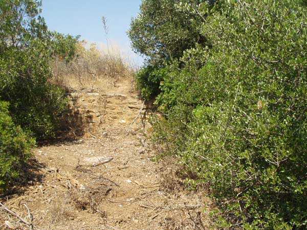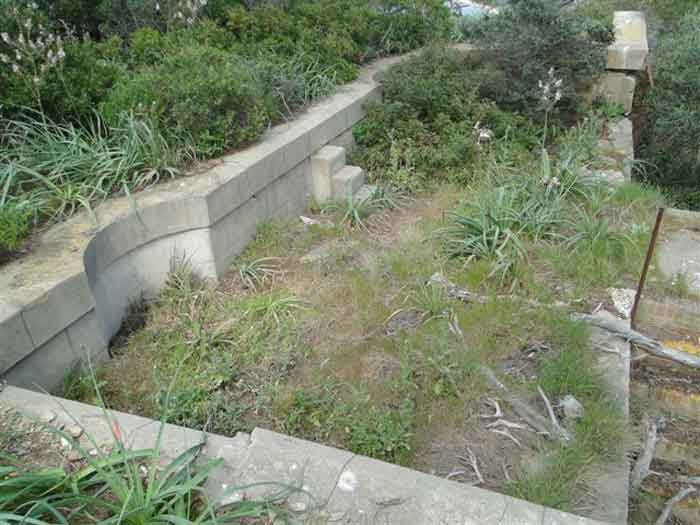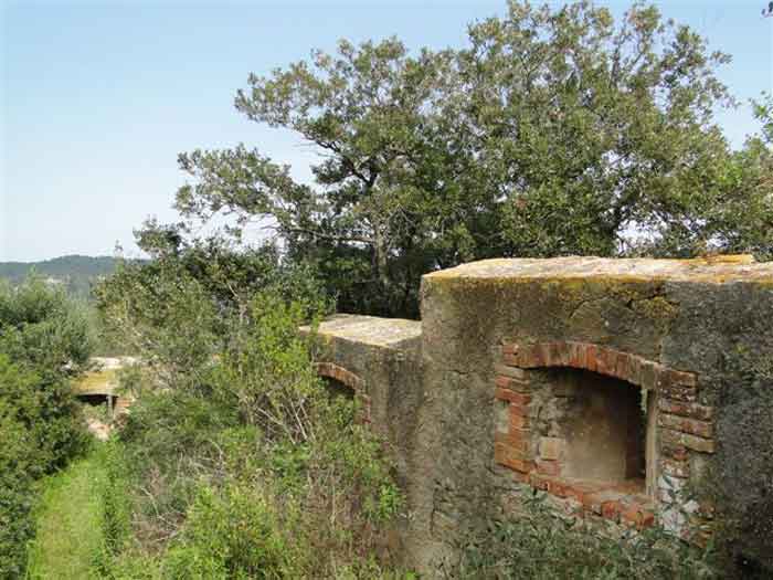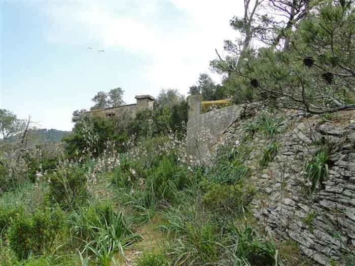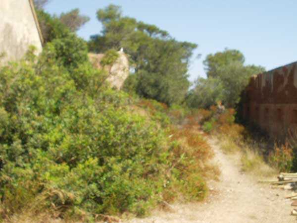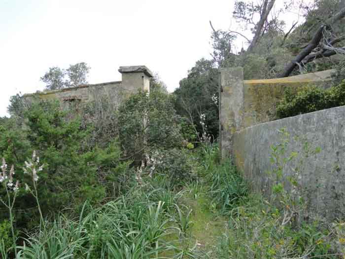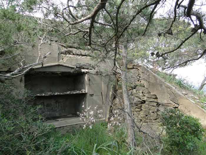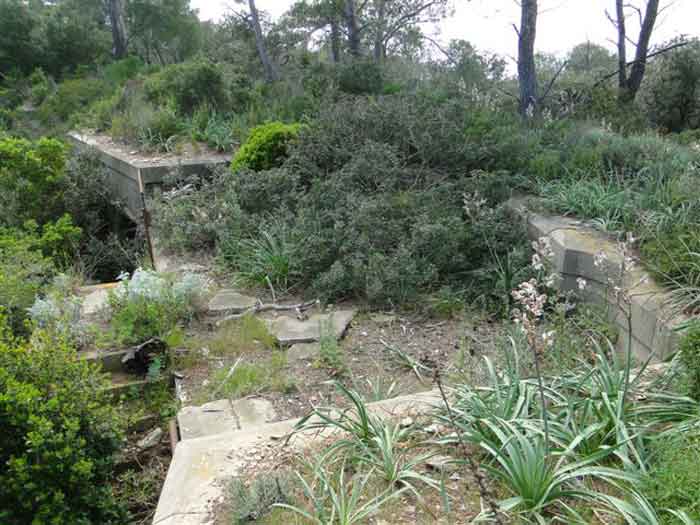 Fortress of Toulon, Hyères islands, north-northeast of the island of Porquerolles, 1882-1884. 104 m/alt. 100 m to the north, at the same time as the neighboring fort, a battery designated north battery Repentance was built. This one is preceded by the battery keeper's house, in perfect condition and still inhabited today (04/2010). The entrance of the battery is fitted with two brick pilasters with pyramidal top. A ditch surrounds the battery on two thirds of its perimeter, the steep slopes of the rocky outcrop supporting it making this obstacle unnecessary along its entire eastern front. On the other hand, on this side, it is surrounded by a defensive wall pierced with embrasures. On plan, the remainder of the perimeter seems provided with a semi-detached scarp, but the vegetation – as much as the ignorance of this detail – prevented us from realizing it. The battery comprises four enormous traverses, three of which are hollow. The first encountered leans its left flank on the scarp. The next one houses the head of the hoist of the magazine dug in the rock in 1893. The third is full and the fourth occupies the center of the widest part of the battery, namely the northern part, which includes, slightly offset from the three others, the fourth firing platform, but also the entrance to the rock magazine and the path towards the second auxiliary battery. The armament of the battery was the same as that of the fort, i.e. 4 G guns 24 cm Model 1876 on P.C. mount. This fourth traverse is in rather poor condition, the two other hollow ones being closed during our visit, as well as the rock magazine where rumors mention a well. In the northeast corner of the battery, in 1888, a door was pierced allowing access to a second auxiliary battery located right at the tip of the rocky outcrop and only a few dozen meters away. It was armed with three pairs of 95 mm Model 1888 guns on crinoline mount. The battery has a chevron shape, the break being at the level of the central pair. The command post is located on the left of the firing platforms and still includes a curious semi-circular metal tablet fixed to the parapet. The two batteries are no longer maintained and the 95 mm one is even rather difficult to visit due to the abundance of vegetation. Nevertheless, it appeared to us in a much better state than its neighbor. Some ammunition niches have preserved their metal partitions and it should also be noted the particularly low parapet height (± 70 cm), allowing negative elevation firing. These batteries, both oriented to cover the roadstead of Hyères, essentially from west to north, are closed to access. See also Repentance (fort of the).
